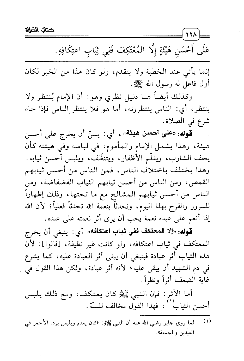 عَلَى أَحْسَنِ هَيْئَةٍ إِلاَّ المُعْتَكِفَ فَفِي ثِيَابِ اعتِكَافِهِ.