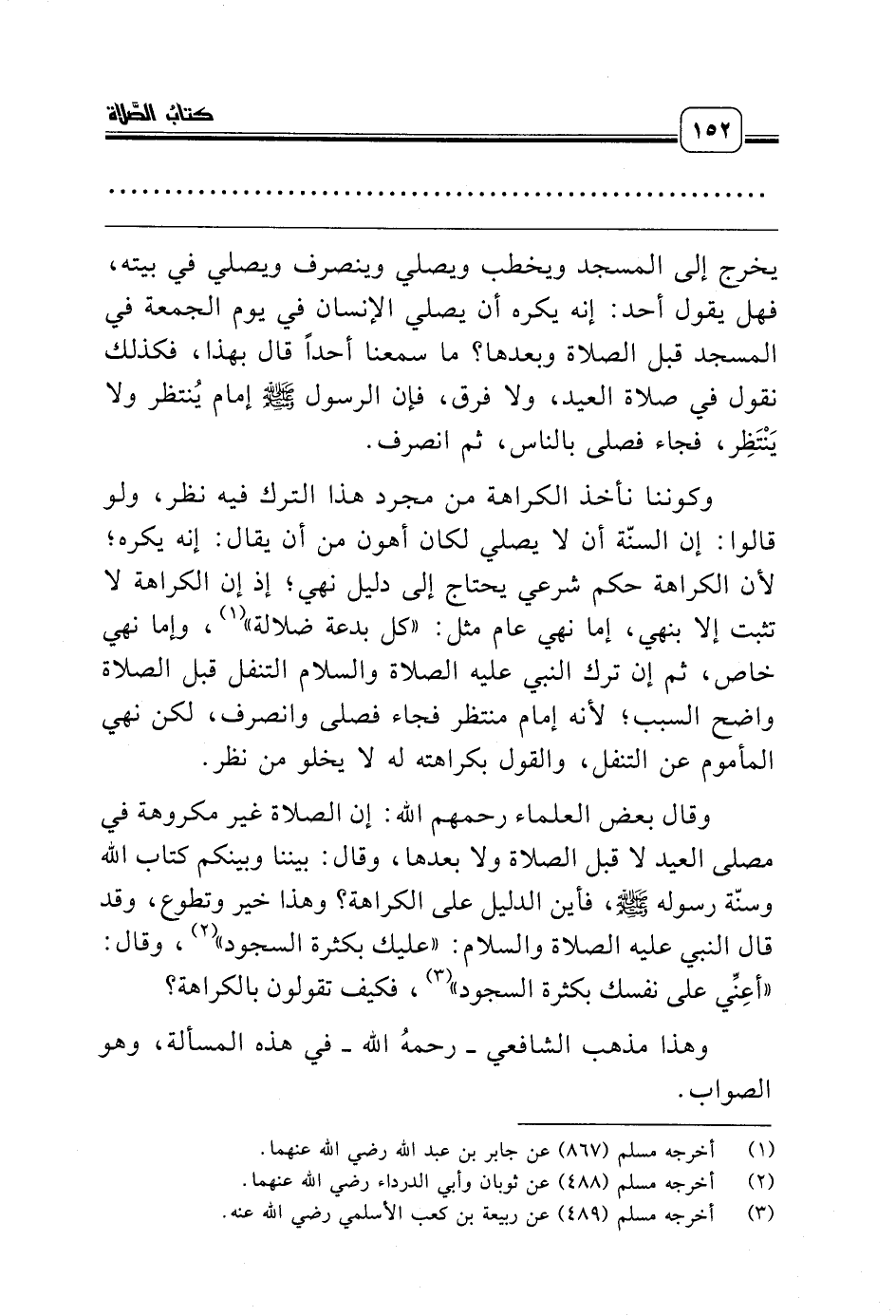 وقال بعض العلماء رحمهم الله: إن الصلاة غير مكروهة في مصلى العيد لا قبل الصلاة ولا بعدها، وقال: بيننا وبينكم كتاب الله وسنّة رسوله صلّى الله عليه وسلّم، فأين الدليل على الكراهة؟ وهذا خير وتطوع، وقد قال النبي عليه الصلاة والسلام: «عليك بكثرة السجود» (¬2)، وقال: «أعِنِّي على نفسك بكثرة السجود» (¬3)، فكيف تقولون بالكراهة؟