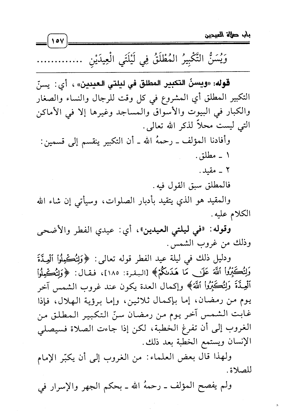 وَيُسَنُّ التَّكْبِيرُ المُطْلَقُ فِي لَيْلَتَي الْعِيدَيْنِ ........