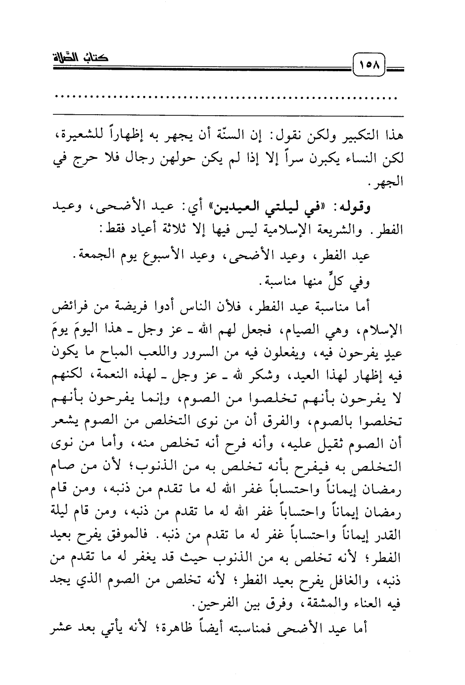 عيد الفطر، وعيد الأضحى، وعيد الأسبوع يوم الجمعة.
