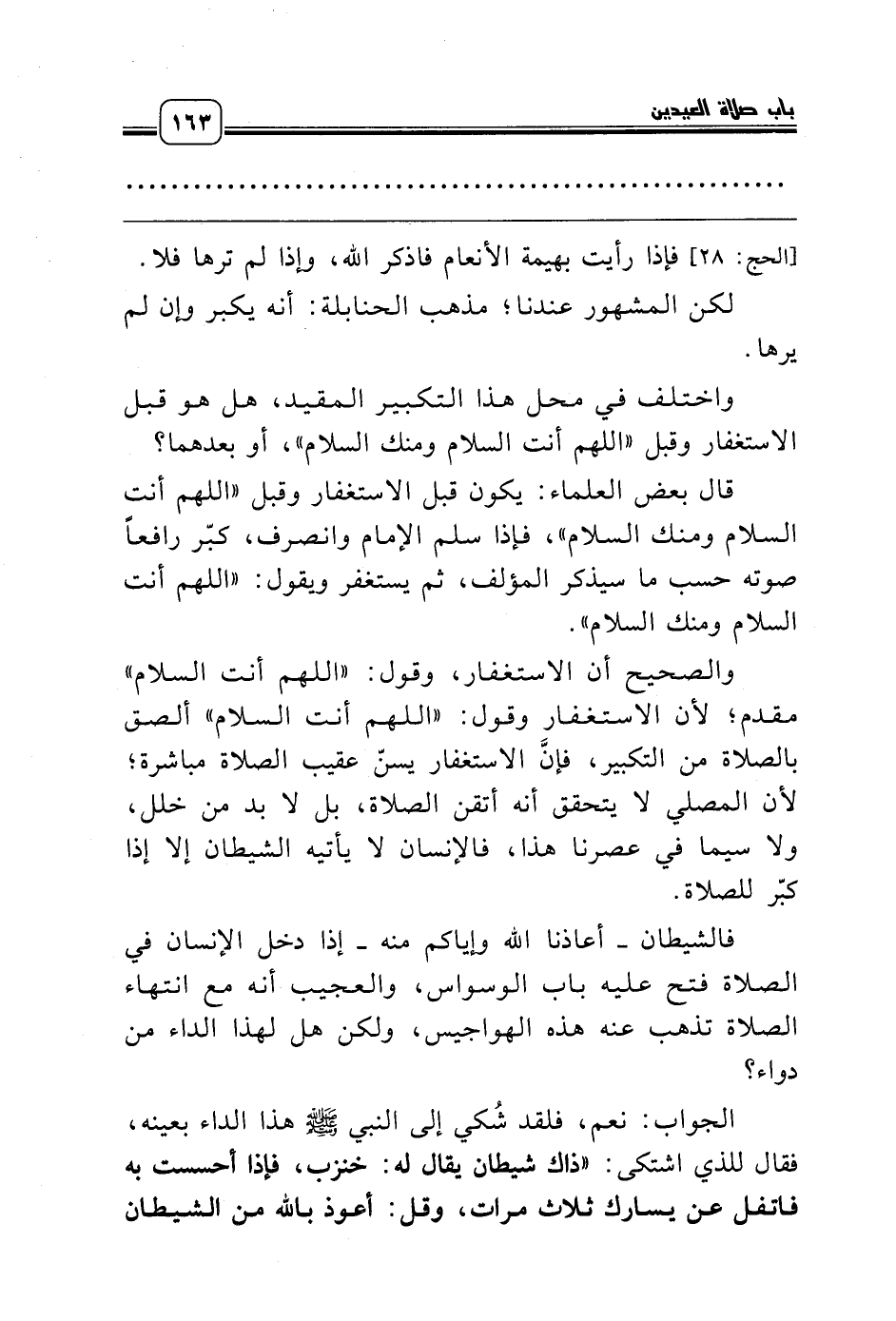 والصحيح أن الاستغفار، وقول: «اللهم أنت السلام» مقدم؛ لأن الاستغفار وقول: «اللهم أنت السلام» ألصق بالصلاة من التكبير، فإنَّ الاستغفار يسنّ عقيب الصلاة مباشرة؛ لأن المصلي لا يتحقق أنه أتقن الصلاة، بل لا بد من خلل، ولا سيما في عصرنا هذا، فالإنسان لا يأتيه الشيطان إلا إذا كبّر للصلاة.