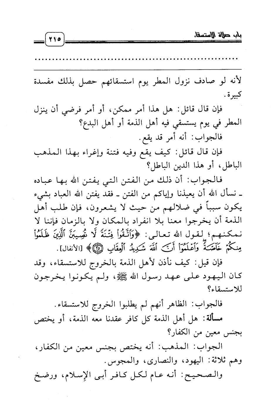 فإن قيل: كيف نأذن لأهل الذمة بالخروج للاستسقاء، وقد كان اليهود على عهد رسول الله صلّى الله عليه وسلّم، ولم يكونوا يخرجون للاستسقاء؟
