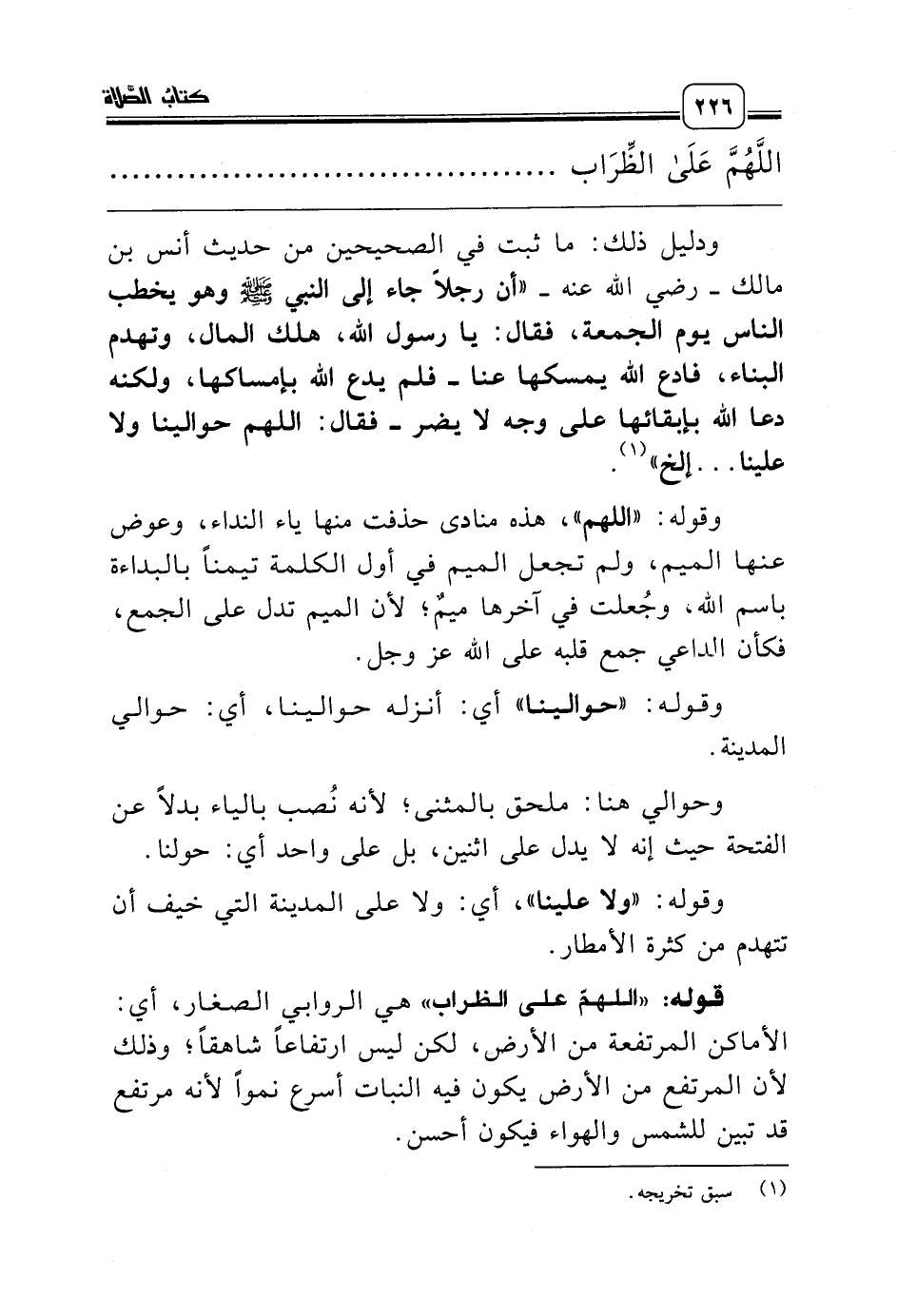 قوله: «اللهمّ على الظراب» هي الروابي الصغار، أي: الأماكن المرتفعة من الأرض، لكن ليس ارتفاعاً شاهقاً؛ وذلك لأن المرتفع من الأرض يكون فيه النبات أسرع نمواً لأنه مرتفع قد تبين للشمس والهواء فيكون أحسن.