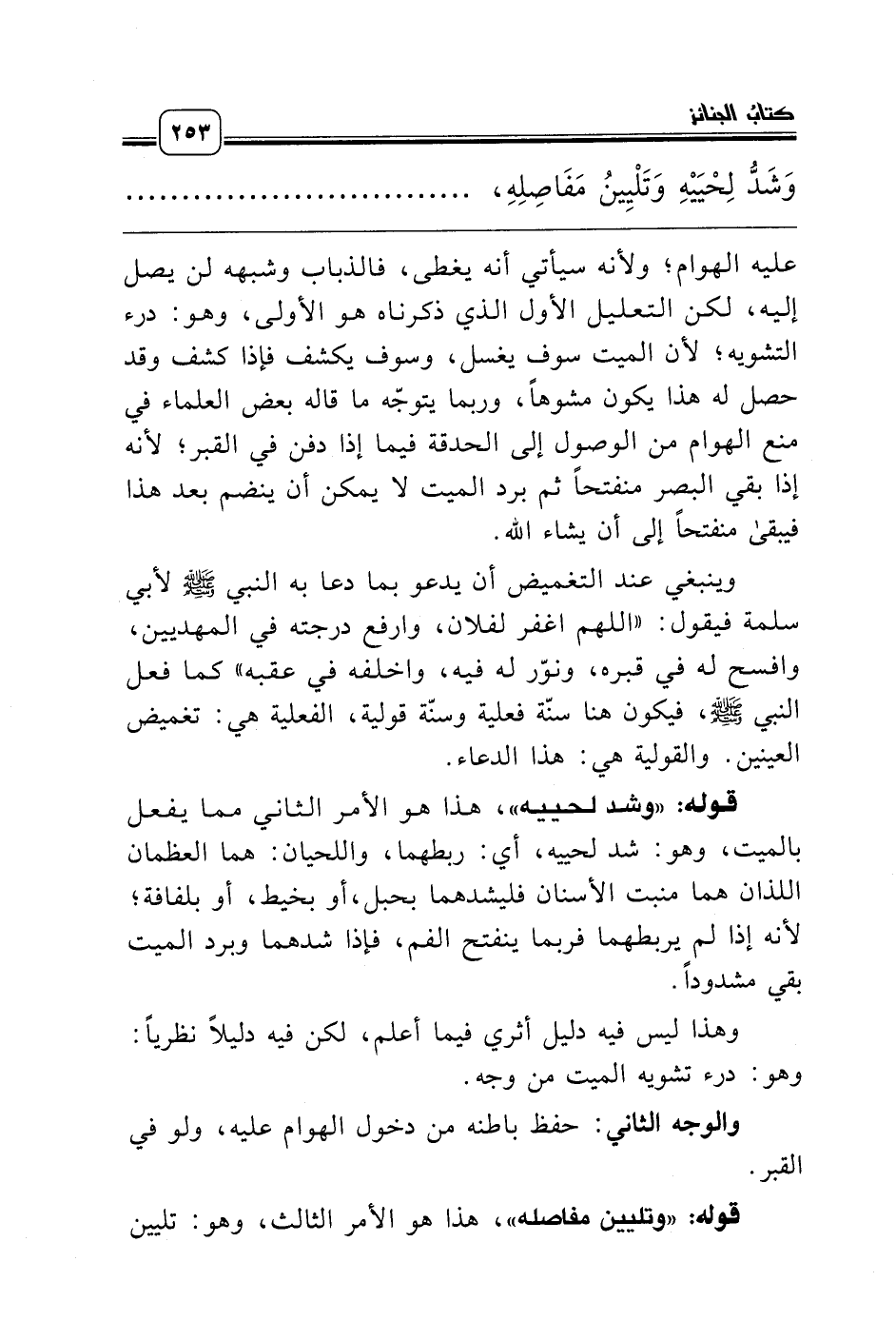 وَشَدُّ لِحْيَيْهِ وَتَلْيِينُ مَفَاصِلِهِ، ............