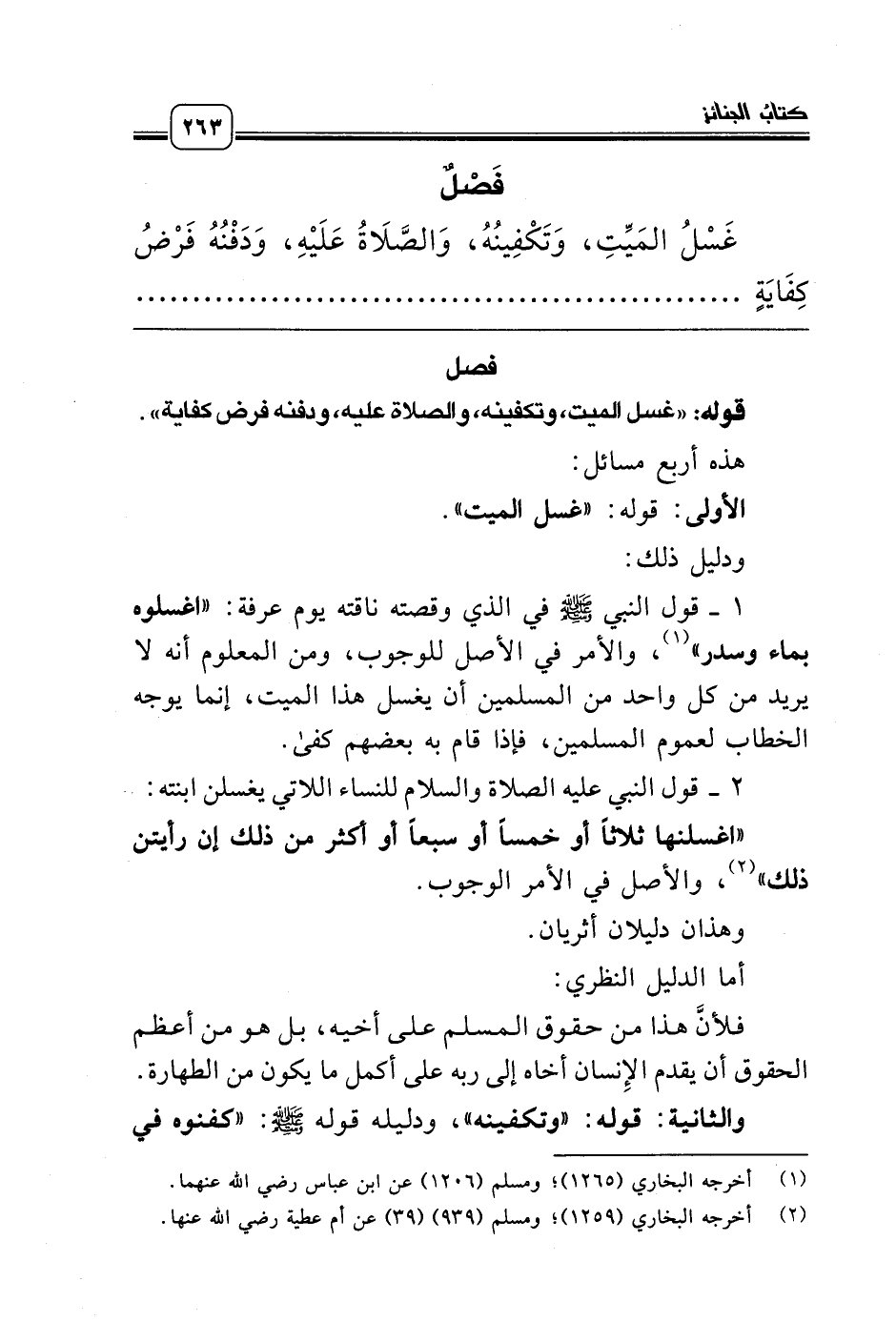 والثانية: قوله: «وتكفينه»، ودليله قوله صلّى الله عليه وسلّم: «كفنوه في