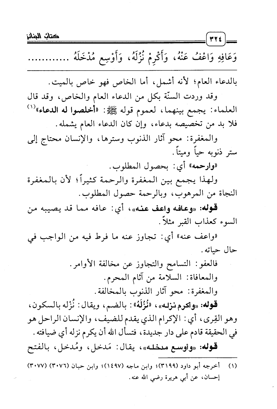 وَعَافِهِ وَاعْفُ عَنْهُ، وَأَكْرِمْ نُزُلَهُ، وَأَوْسِع مُدْخَلَهُ وَاغْسِلْهُ بِالْمَاءِ وَالثَّلْجِ وَالْبَرَدِ، ......