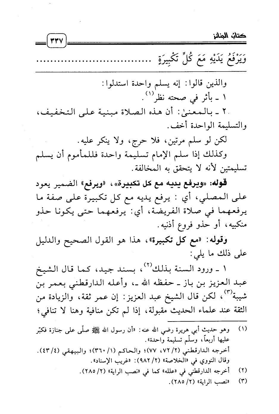 1 ـ ورود السنة بذلك (¬2)، بسند جيد، كما قال الشيخ عبد العزيز بن باز ـ حفظه الله ـ، وأعله الدارقطني بعمر بن شيبة (¬3)، لكن قال الشيخ عبد العزيز: إن عمر ثقة، والزيادة من الثقة عند علماء الحديث مقبولة، إذا لم تكن منافية وهنا لا تنافي؛