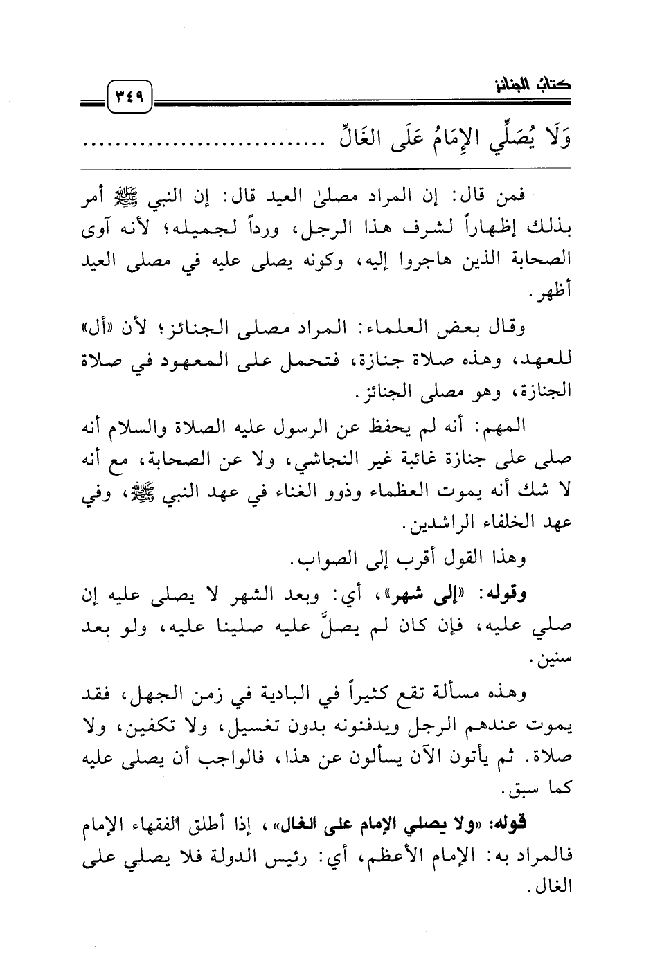قوله: «ولا يصلي الإمام على الغال»، إذا أطلق الفقهاء الإمام فالمراد به: الإمام الأعظم، أي: رئيس الدولة فلا يصلي على الغال.