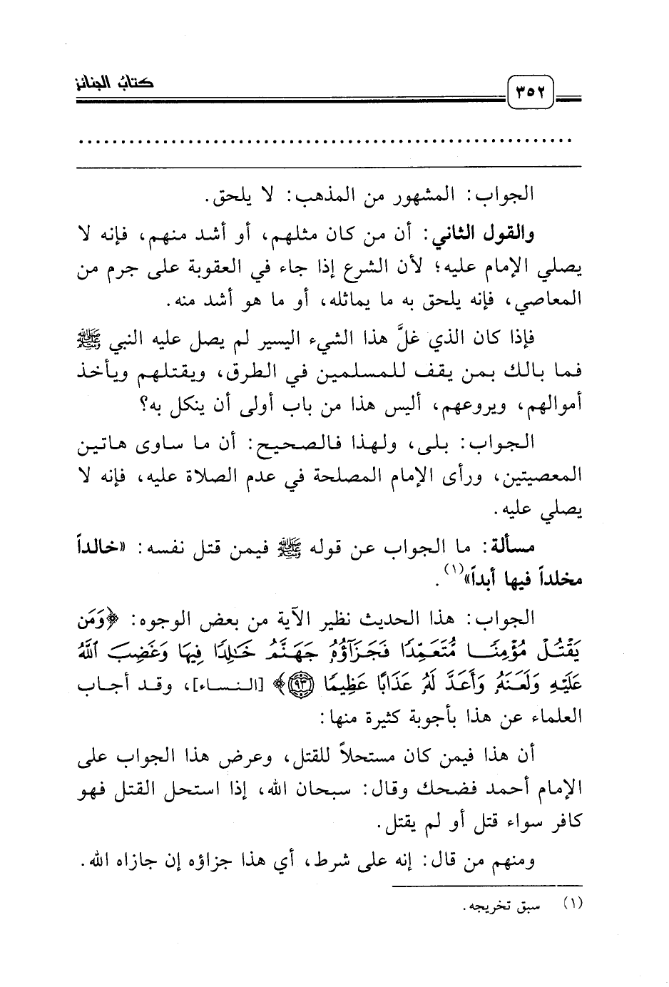 أن هذا فيمن كان مستحلاً للقتل، وعرض هذا الجواب على الإمام أحمد فضحك وقال: سبحان الله، إذا استحل القتل فهو كافر سواء قتل أو لم يقتل.