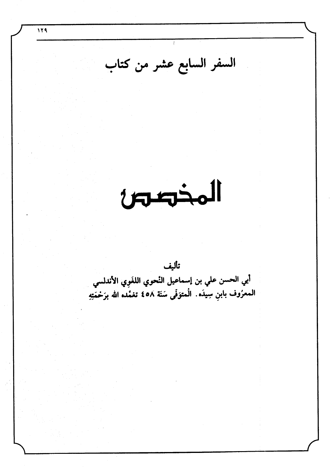 1 - السّفر السَّابِع عشر من كتاب الْمُخَصّص