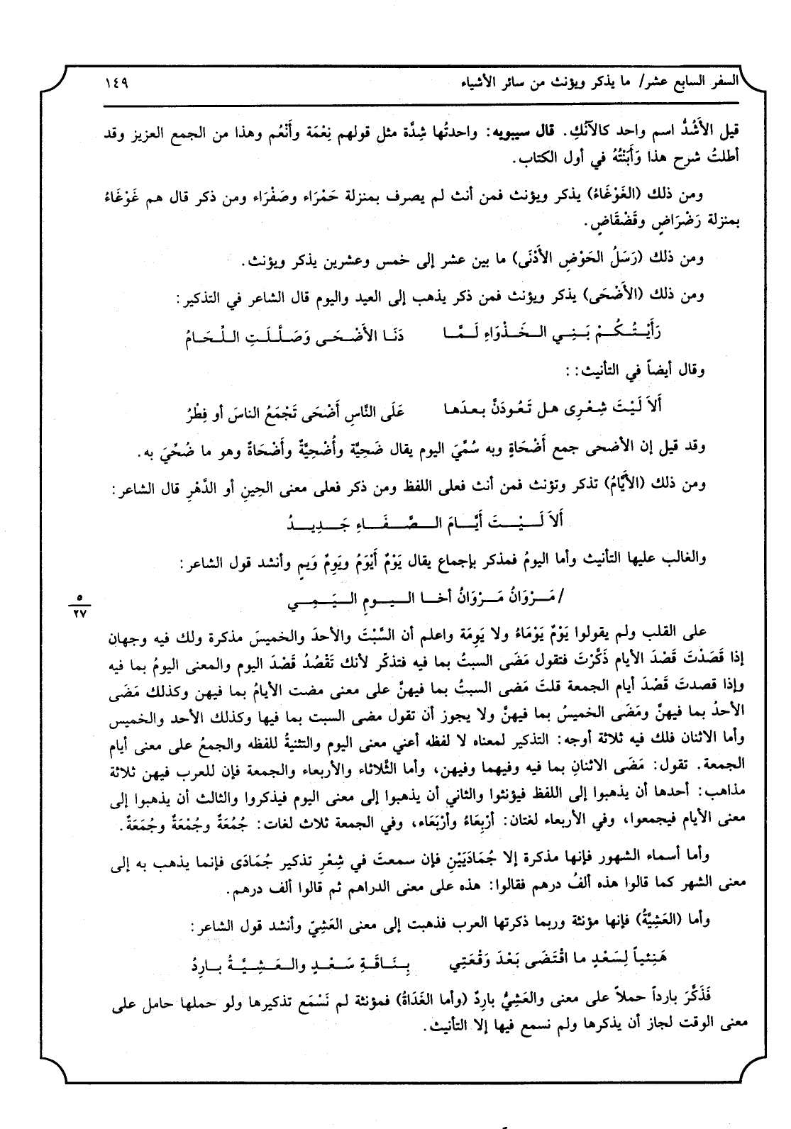 وَأما أَسمَاء الشُّهُور فَإِنَّهَا مذكرة إلاجُمَادَيَيْنِ فَإِن سمعتَ فِي شِعْرِ تذكير جُماَدَى فَإِنَّمَا يذهب بِهِ إِلَى معنى الشَّهْر كَمَا قَالُوا هَذِه ألفُ دِرْهَم فَقَالُوا: هَذِه على معنى الدَّرَاهِم ثمَّ قَالُوا ألف دِرْهَم
