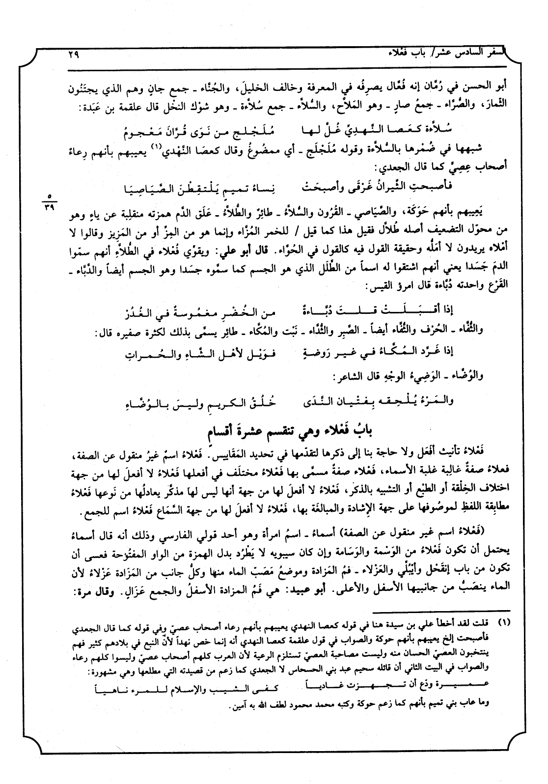 1 - بَاب فُعْلاء وَهِي تَنْقَسِم عشرةَ أقسامٍ