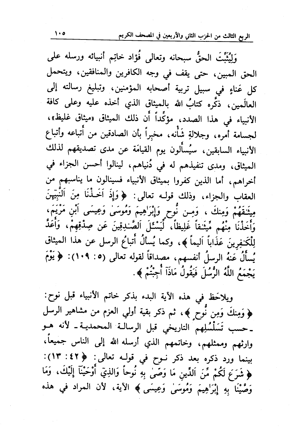 ويلاحظ في هذه الآية البدء بذكر خاتم الأنبياء قبل نوح: {وَمِنْكَ وَمِنْ نُوحٍ}، ثم ذكر بقية أولي العزم من مشاهير الرسل -حسب تسلسلهم التاريخي قبل الرسالة المحمدية - لأنه هو وارثهم وممثلهم، وخاتمهم الذي أرسله الله إلى الناس جميعا، بينما ورد ذكره بعد ذكر نوح في قوله تعالى: (13: 42): {شَرَعَ لَكُمْ مِنَ الدِّينِ مَا وَصَّى بِهِ نُوحًا وَالَّذِي أَوْحَيْنَا إِلَيْكَ وَمَا وَصَّيْنَا بِهِ إِبْرَاهِيمَ وَمُوسَى وَعِيسَى} الآية، لأن المراد في هذه