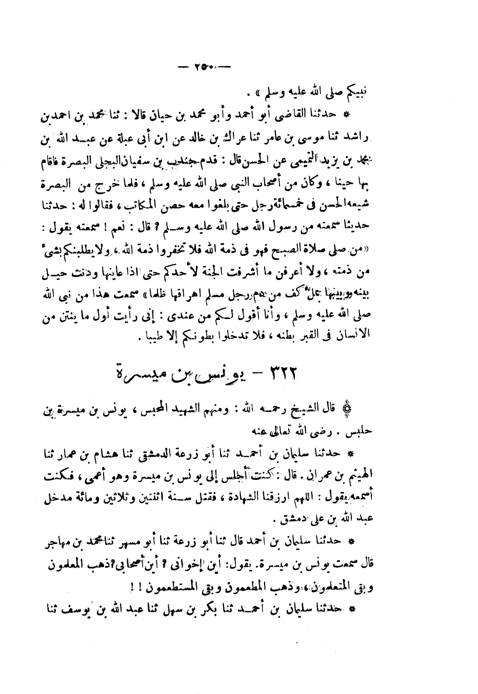 §يُونُسُ بْنُ مَيْسَرَةَ قَالَ الشَّيْخُ رَحِمَهُ اللهُ: وَمِنْهُمُ الشَّهِيدُ الْمُحْبَسُ، يُونُسُ بْنُ مَيْسَرَةَ بْنِ حَلْبَسٍ، رَضِيَ اللهُ تَعَالَى عَنْهُ