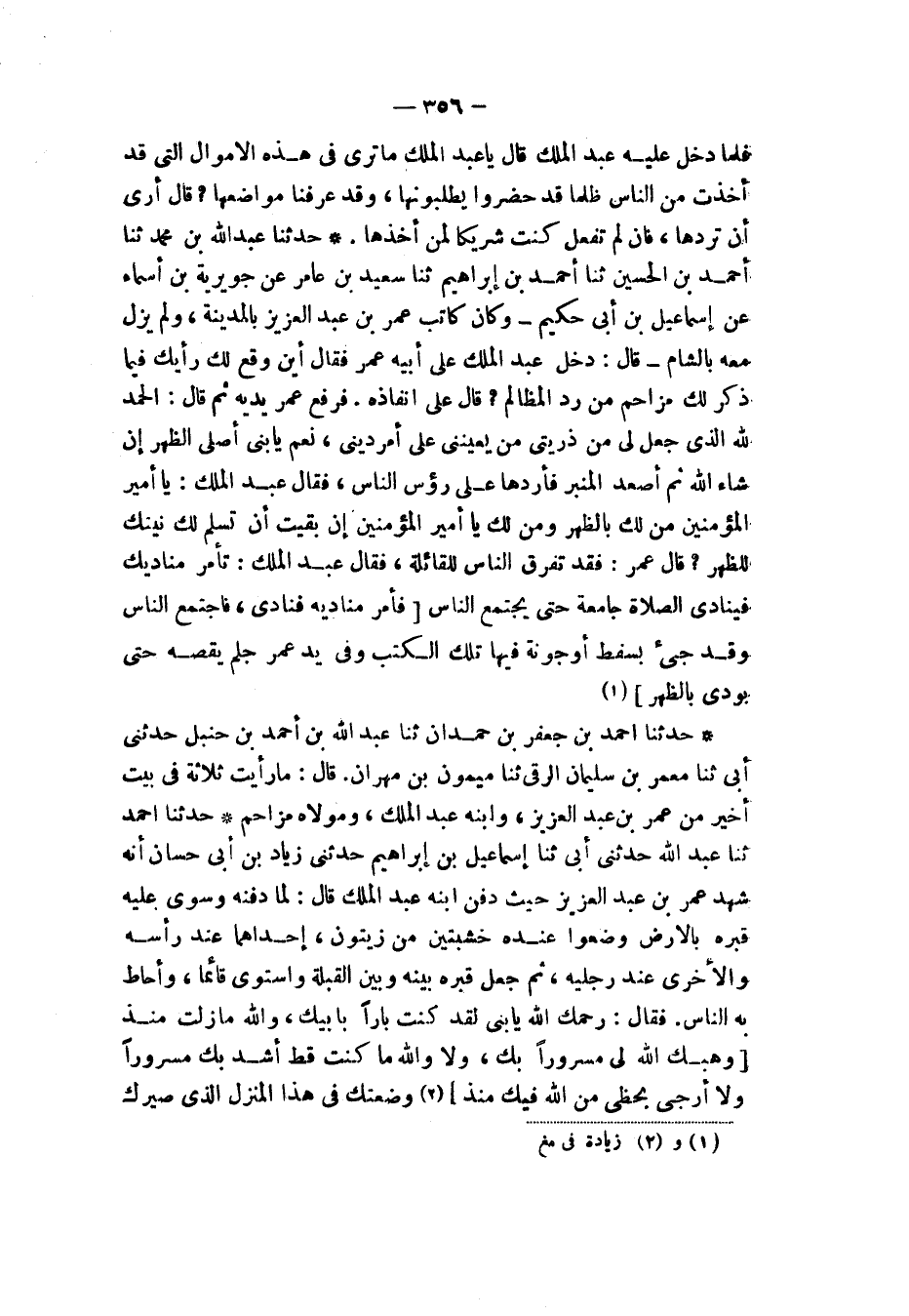 حَدَّثَنَا أَحْمَدُ بْنُ جَعْفَرِ بْنِ حَمْدَانَ، ثنا عَبْدُ اللهِ بْنُ أَحْمَدَ بْنِ حَنْبَلٍ، حَدَّثَنِي أَبِي، ثنا مَعْمَرُ بْنُ سُلَيْمَانَ الرَّقِّيُّ، ثنا مَيْمُونُ بْنُ مِهْرَانَ قَالَ: «§مَا رَأَيْتُ ثَلَاثَةً فِي بَيْتٍ أَخْيَرَ مِنْ عُمَرَ بْنِ عَبْدِ الْعَزِيزِ، وَابْنِهِ عَبْدِ الْمَلِكِ، وَمَوْلَاهُ مُزَاحِمٍ»