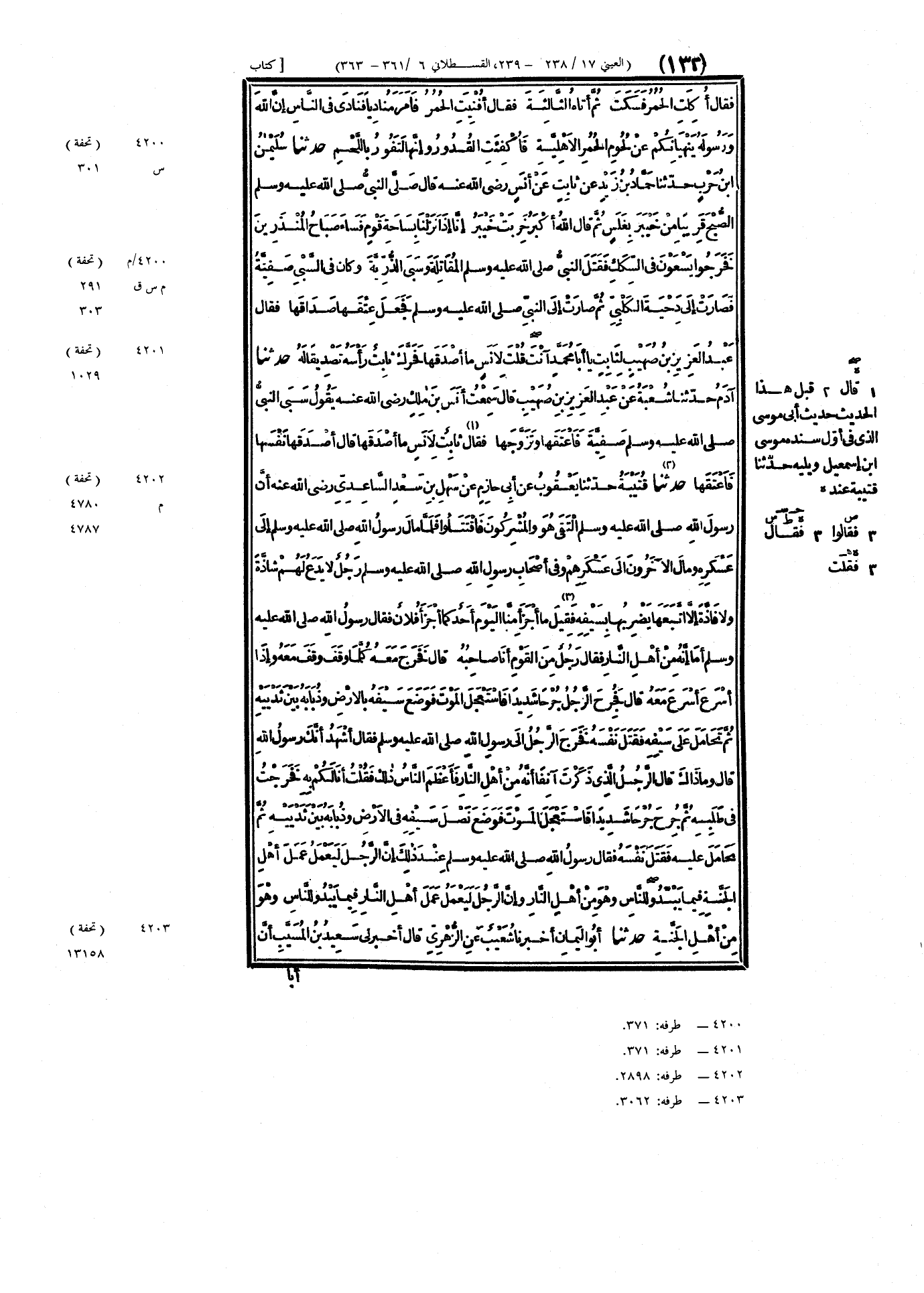 ٤٢٠٣ - حَدَّثَنَا أَبُو اليَمَانِ، أَخْبَرَنَا شُعَيْبٌ، عَنِ الزُّهْرِيِّ، قَالَ: أَخْبَرَنِي سَعِيدُ بْنُ المُسَيِّبِ، أَنَّ ⦗١٣٣⦘ أَبَا هُرَيْرَةَ رَضِيَ اللَّهُ عَنْهُ، قَالَ: شَهِدْنَا خَيْبَرَ، فَقَالَ رَسُولُ اللَّهِ صَلَّى اللهُ عَلَيْهِ وَسَلَّمَ لِرَجُلٍ مِمَّنْ مَعَهُ يَدَّعِي الإِسْلَامَ: «هَذَا مِنْ أَهْلِ النَّارِ». فَلَمَّا حَضَرَ القِتَالُ قَاتَلَ الرَّجُلُ أَشَدَّ القِتَالِ، حَتَّى كَثُرَتْ بِهِ الجِرَاحَةُ، فَكَادَ بَعْضُ النَّاسِ يَرْتَابُ، فَوَجَدَ الرَّجُلُ أَلَمَ الجِرَاحَةِ، فَأَهْوَى بِيَدِهِ إِلَى كِنَانَتِهِ فَاسْتَخْرَجَ مِنْهَا أَسْهُمًا فَنَحَرَ بِهَا نَفْسَهُ، فَاشْتَدَّ رِجَالٌ مِنَ المُسْلِمِينَ، فَقَالُوا: يَا رَسُولَ اللَّهِ، صَدَّقَ اللَّهُ حَدِيثَكَ، انْتَحَرَ فُلَانٌ فَقَتَلَ نَفْسَهُ، فَقَالَ: «قُمْ يَا فُلَانُ، فَأَذِّنْ أَنَّهُ لَا يَدْخُلُ الجَنَّةَ إِلَّا مُؤْمِنٌ، إِنَّ اللَّهَ يُؤَيِّدُ الدِّينَ بِالرَّجُلِ الفَاجِرِ» تَابَعَهُ مَعْمَرٌ، عَنِ الزُّهْرِيِّ، وَقَالَ شَبِيبٌ، عَنْ يُونُسَ، عَنْ ابْنِ شِهَابٍ، أَخْبَرَنِي ابْنُ المُسَيِّبِ، وَعَبْدُ الرَّحْمَنِ بْنُ عَبْدِ اللَّهِ بْنِ كَعْبٍ، أَنَّ أَبَا هُرَيْرَةَ، قَالَ: «شَهِدْنَا مَعَ النَّبِيِّ صَلَّى اللهُ عَلَيْهِ وَسَلَّمَ حُنَيْنًا»، وَقَالَ ابْنُ المُبَارَكِ، عَنْ يُونُسَ، عَنِ الزُّهْرِيِّ، عَنْ سَعِيدٍ، عَنِ النَّبِيِّ صَلَّى اللهُ عَلَيْهِ وَسَلَّمَ. تَابَعَهُ صَالِحٌ، عَنِ الزُّهْرِيِّ، وَقَالَ: الزُّبَيْدِيُّ، أَخْبَرَنِي الزُّهْرِيُّ، أَنَّ عَبْدَ الرَّحْمَنِ بْنَ كَعْبٍ، أَخْبَرَهُ أَنَّ عُبَيْدَ اللَّهِ بْنَ كَعْبٍ قَالَ: «أَخْبَرَنِي مَنْ شَهِدَ مَعَ النَّبِيِّ صَلَّى اللهُ عَلَيْهِ وَسَلَّمَ خَيْبَرَ»، قَالَ لزُّهْرِيُّ وَأَخْبَرَنِي عُبَيْدُ اللَّهِ بْنُ عَبْدِ اللَّهِ، وَسَعِيدٌ عَنِ النَّبِيِّ صَلَّى اللهُ عَلَيْهِ وَسَلَّمَ