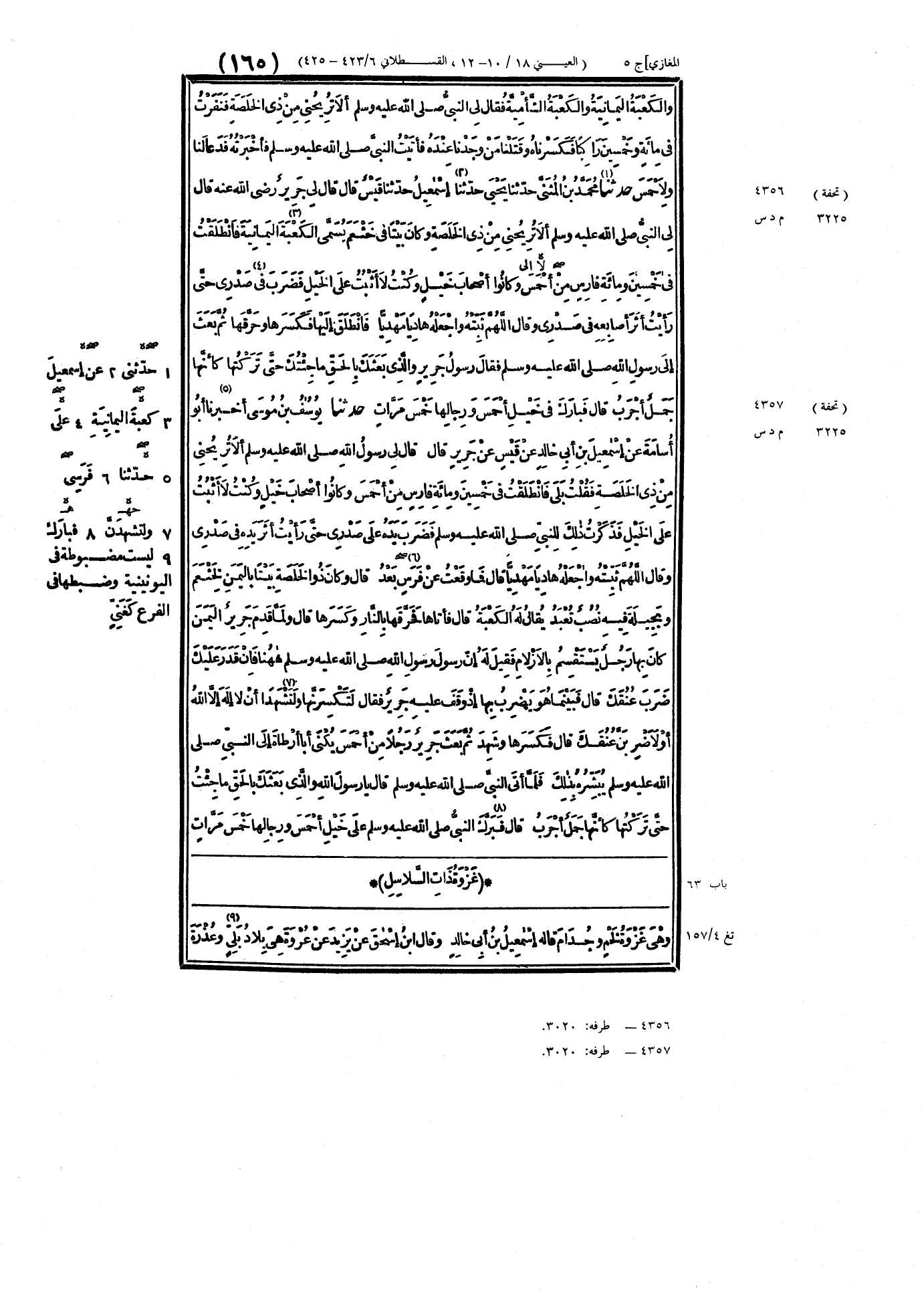٤٣٥٧ - حَدَّثَنَا يُوسُفُ بْنُ مُوسَى، أَخْبَرَنَا أَبُو أُسَامَةَ، عَنْ إِسْمَاعِيلَ بْنِ أَبِي خَالِدٍ، عَنْ قَيْسٍ، عَنْ جَرِيرٍ، قَالَ: قَالَ لِي رَسُولُ اللَّهِ صَلَّى اللهُ عَلَيْهِ وَسَلَّمَ: «أَلَا تُرِيحُنِي مِنْ ذِي الخَلَصَةِ» فَقُلْتُ: بَلَى، فَانْطَلَقْتُ فِي خَمْسِينَ وَمِائَةِ فَارِسٍ مِنْ أَحْمَسَ، وَكَانُوا أَصْحَابَ خَيْلٍ، وَكُنْتُ لَا أَثْبُتُ عَلَى الخَيْلِ، فَذَكَرْتُ ذَلِكَ لِلنَّبِيِّ صَلَّى اللهُ عَلَيْهِ وَسَلَّمَ، فَضَرَبَ يَدَهُ عَلَى صَدْرِي حَتَّى رَأَيْتُ أَثَرَ يَدِهِ فِي صَدْرِي، وَقَالَ: «اللَّهُمَّ ثَبِّتْهُ، وَاجْعَلْهُ هَادِيًا مَهْدِيًّا» قَالَ: فَمَا وَقَعْتُ عَنْ فَرَسٍ بَعْدُ، قَالَ: وَكَانَ ذُو الخَلَصَةِ بَيْتًا بِاليَمَنِ لِخَثْعَمَ، وَبَجِيلَةَ، فِيهِ نُصُبٌ تُعْبَدُ، يُقَالُ لَهُ الكَعْبَةُ، قَالَ: فَأَتَاهَا فَحَرَّقَهَا بِالنَّارِ وَكَسَرَهَا، قَالَ: وَلَمَّا قَدِمَ جَرِيرٌ اليَمَنَ، كَانَ بِهَا رَجُلٌ يَسْتَقْسِمُ بِالأَزْلَامِ، فَقِيلَ لَهُ: إِنَّ رَسُولَ رَسُولِ اللَّهِ صَلَّى اللهُ عَلَيْهِ وَسَلَّمَ هَا هُنَا، فَإِنْ قَدَرَ عَلَيْكَ ضَرَبَ عُنُقَكَ، قَالَ: فَبَيْنَمَا هُوَ يَضْرِبُ بِهَا إِذْ وَقَفَ عَلَيْهِ جَرِيرٌ، فَقَالَ: لَتَكْسِرَنَّهَا وَلَتَشْهَدَنَّ: أَنْ لَا إِلَهَ إِلَّا اللَّهُ، أَوْ لَأَضْرِبَنَّ عُنُقَكَ؟ قَالَ: فَكَسَرَهَا وَشَهِدَ، ثُمَّ بَعَثَ جَرِيرٌ رَجُلًا مِنْ أَحْمَسَ يُكْنَى أَبَا أَرْطَاةَ إِلَى النَّبِيِّ صَلَّى اللهُ عَلَيْهِ وَسَلَّمَ يُبَشِّرُهُ بِذَلِكَ، فَلَمَّا أَتَى النَّبِيَّ صَلَّى اللهُ عَلَيْهِ وَسَلَّمَ قَالَ: يَا رَسُولَ اللَّهِ وَالَّذِي بَعَثَكَ بِالحَقِّ، مَا جِئْتُ حَتَّى تَرَكْتُهَا كَأَنَّهَا جَمَلٌ أَجْرَبُ، قَالَ: فَبَرَّكَ النَّبِيُّ صَلَّى اللهُ عَلَيْهِ وَسَلَّمَ عَلَى خَيْلِ أَحْمَسَ وَرِجَالِهَا خَمْسَ مَرَّاتٍ
