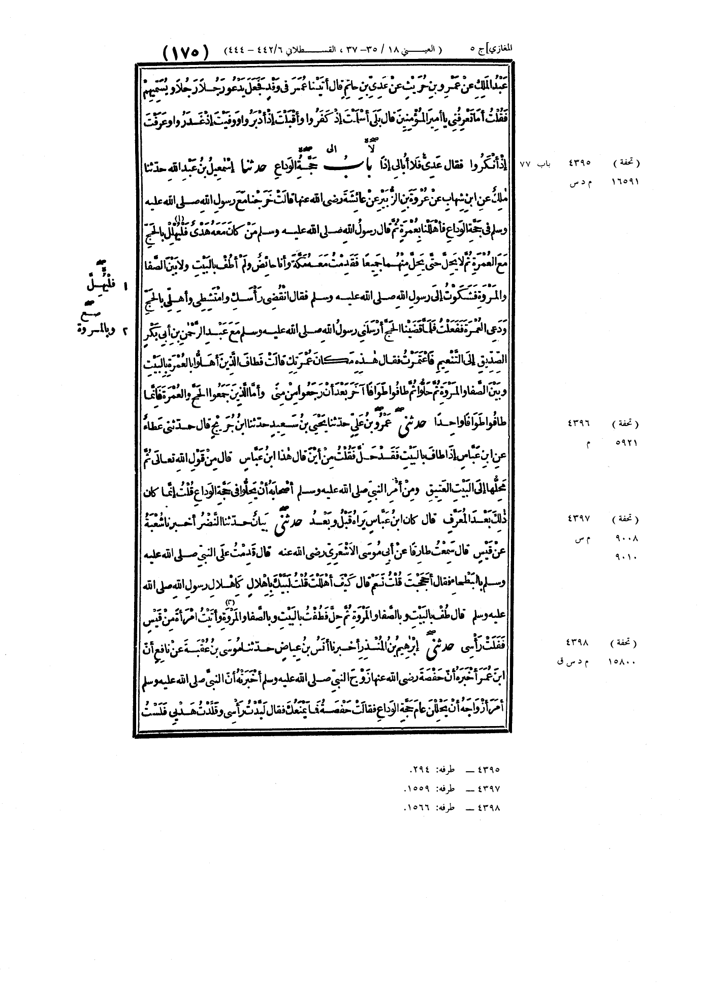 ٤٣٩٧ - حَدَّثَنِي بَيَانٌ، حَدَّثَنَا النَّضْرُ، أَخْبَرَنَا شُعْبَةُ، عَنْ قَيْسٍ، قَالَ: سَمِعْتُ طَارِقًا، عَنْ أَبِي مُوسَى الأَشْعَرِيِّ رَضِيَ اللَّهُ عَنْهُ، قَالَ: قَدِمْتُ عَلَى النَّبِيِّ صَلَّى اللهُ عَلَيْهِ وَسَلَّمَ بِالْبَطْحَاءِ، فَقَالَ: «أَحَجَجْتَ» قُلْتُ: نَعَمْ، قَالَ: «كَيْفَ أَهْلَلْتَ» قُلْتُ: لَبَّيْكَ بِإِهْلَالٍ كَإِهْلَالِ رَسُولِ اللَّهِ صَلَّى اللهُ عَلَيْهِ وَسَلَّمَ، قَالَ: «طُفْ بِالْبَيْتِ، وَبِالصَّفَا، وَالمَرْوَةِ، ثُمَّ حِلَّ» فَطُفْتُ بِالْبَيْتِ وَبِالصَّفَا وَالمَرْوَةِ، وَأَتَيْتُ امْرَأَةً مِنْ قَيْسٍ، فَفَلَتْ رَأْسِي