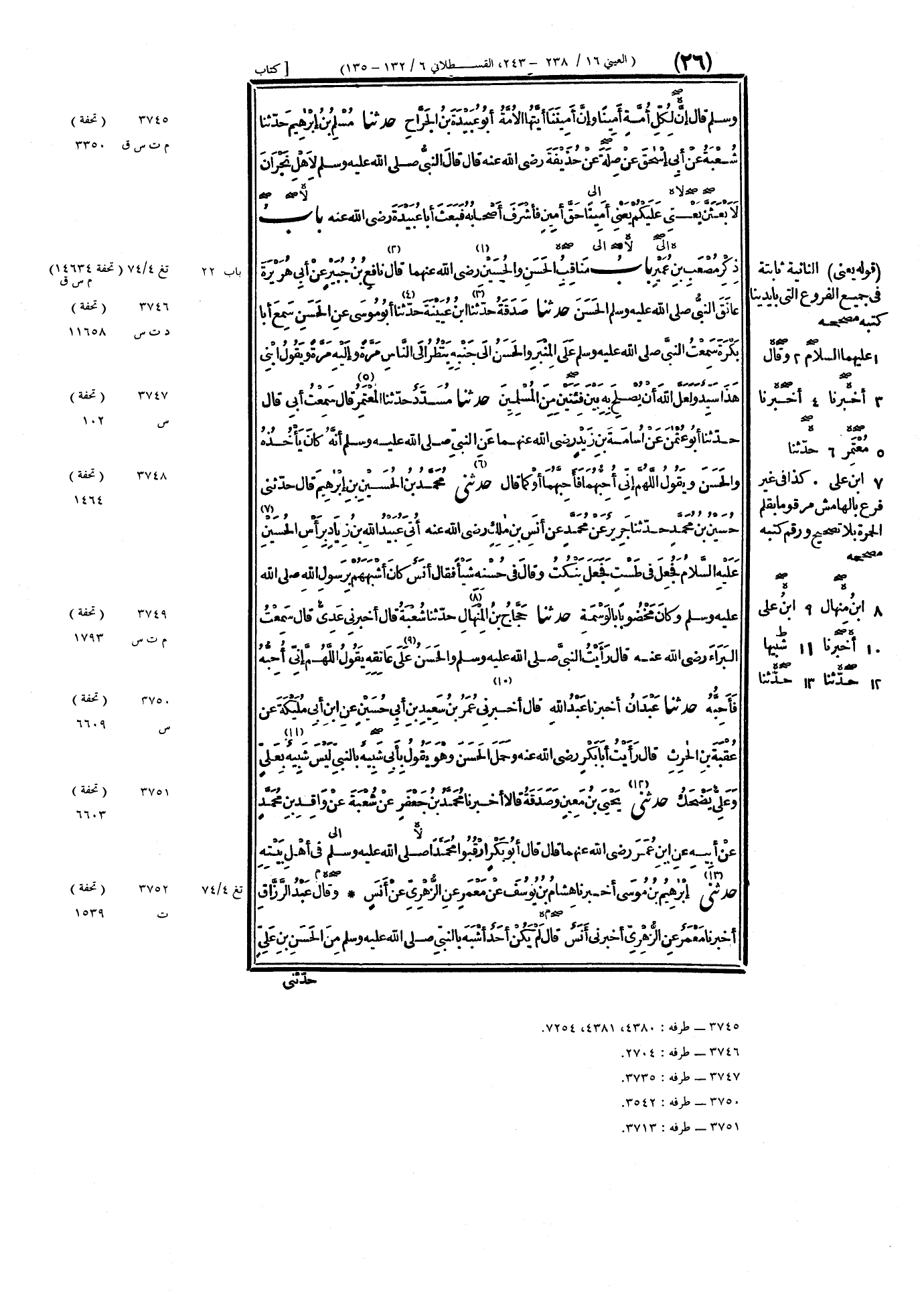 ٣٧٥١ - حَدَّثَنِي يَحْيَى بْنُ مَعِينٍ، وَصَدَقَةُ، قَالَا: أَخْبَرَنَا مُحَمَّدُ بْنُ جَعْفَرٍ، عَنْ شُعْبَةَ، عَنْ وَاقِدِ بْنِ مُحَمَّدٍ، عَنْ أَبِيهِ، عَنِ ابْنِ عُمَرَ رَضِيَ اللَّهُ عَنْهُمَا، قَالَ: قَالَ أَبُو بَكْرٍ: «ارْقُبُوا مُحَمَّدًا صَلَّى اللهُ عَلَيْهِ وَسَلَّمَ فِي أَهْلِ بَيْتِهِ»