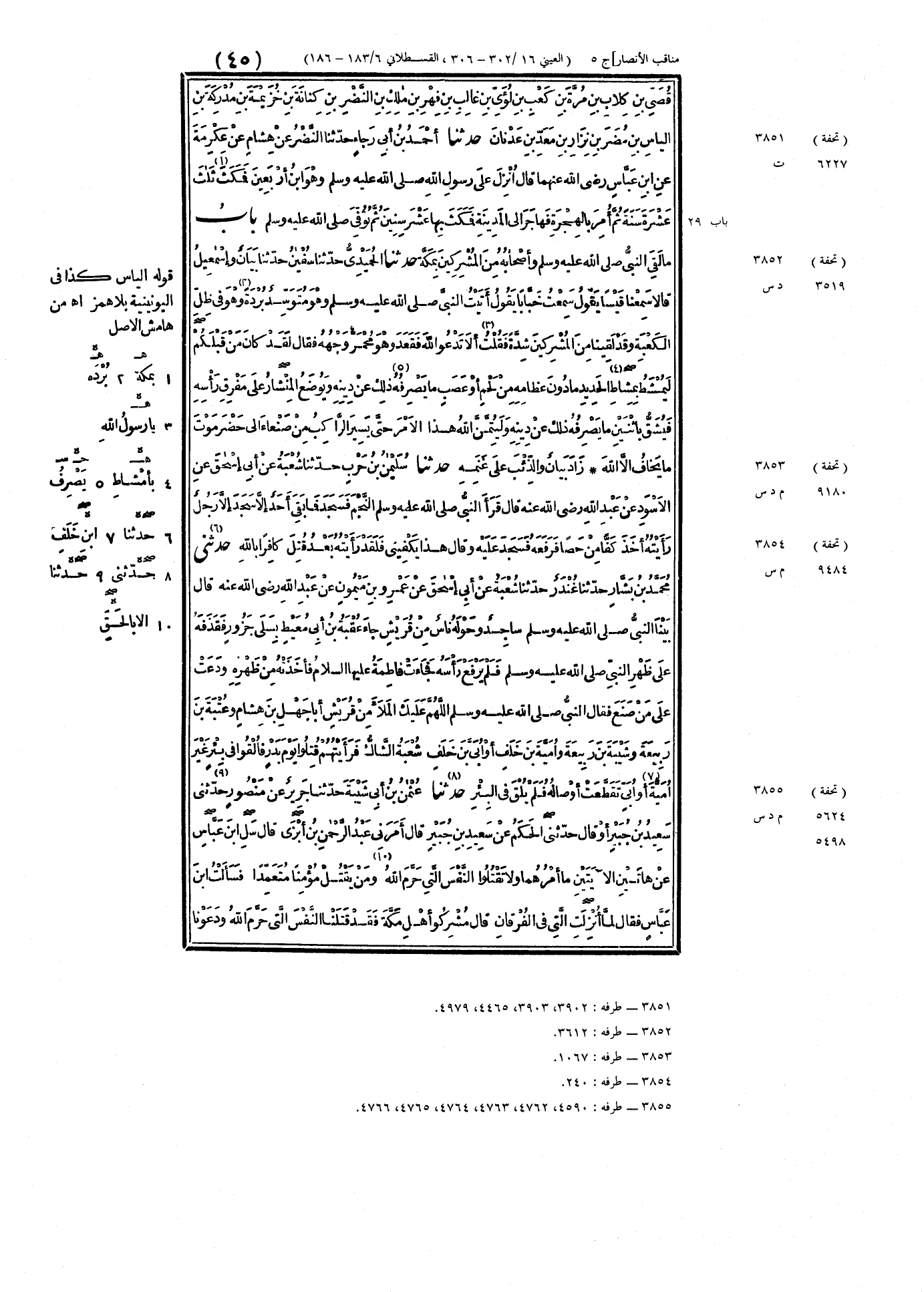 ٣٨٥١ - حَدَّثَنَا أَحْمَدُ ابْنُ أَبِي رَجَاءٍ، حَدَّثَنَا النَّضْرُ، عَنْ هِشَامٍ، عَنْ عِكْرِمَةَ، عَنِ ابْنِ عَبَّاسٍ رَضِيَ اللَّهُ عَنْهُمَا، قَالَ: «أُنْزِلَ عَلَى رَسُولِ اللَّهِ صَلَّى اللهُ عَلَيْهِ وَسَلَّمَ وَهُوَ ابْنُ أَرْبَعِينَ، فَمَكَثَ بِمَكَّةَ ثَلَاثَ عَشْرَةَ سَنَةً، ثُمَّ أُمِرَ بِالهِجْرَةِ فَهَاجَرَ إِلَى المَدِينَةِ، فَمَكَثَ بِهَا عَشْرَ سِنِينَ، ثُمَّ تُوُفِّيَ صَلَّى اللهُ عَلَيْهِ وَسَلَّمَ»