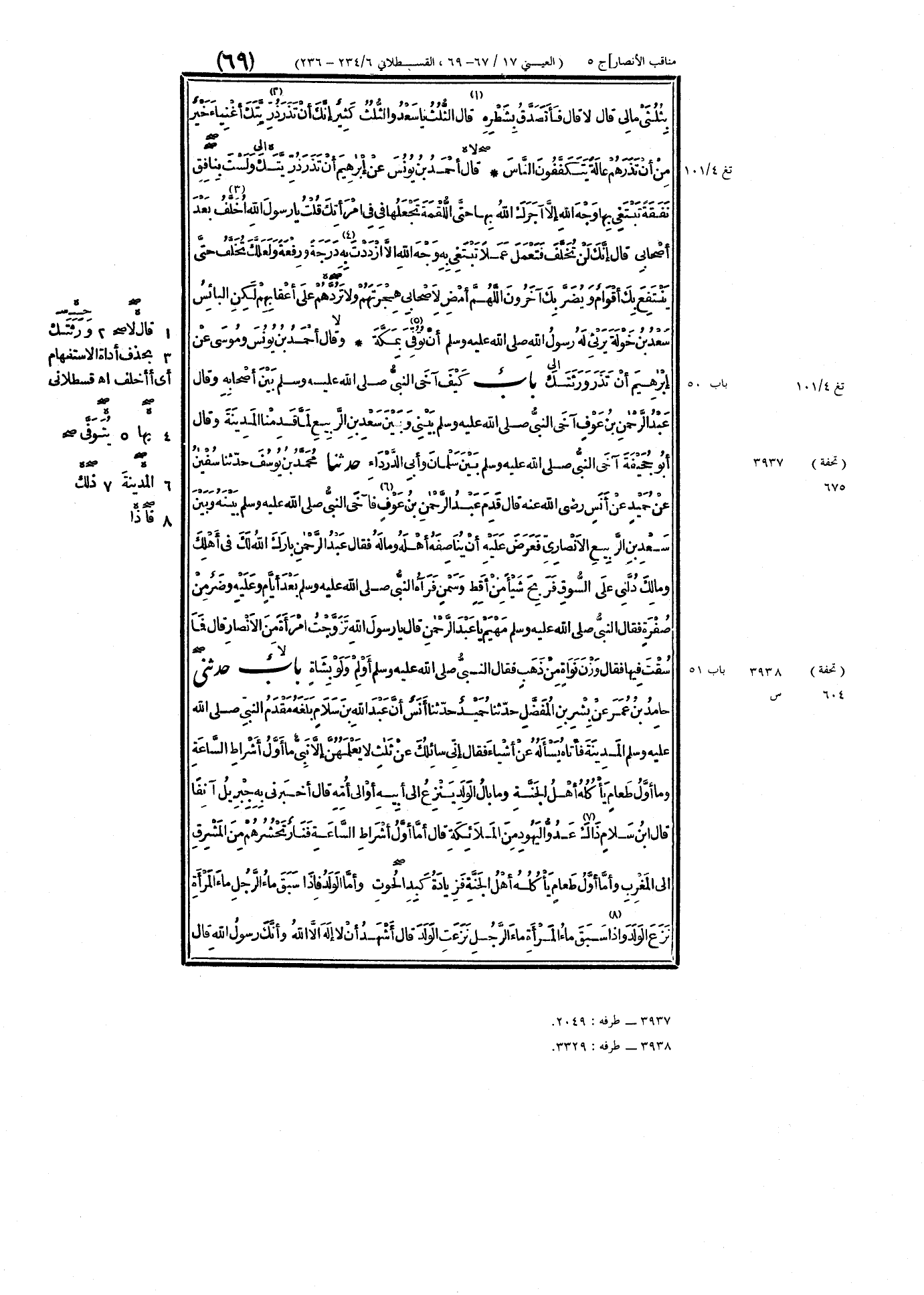 ٣٩٣٨ - حَدَّثَنِي حَامِدُ بْنُ عُمَرَ، عَنْ بِشْرِ بْنِ المُفَضَّلِ، حَدَّثَنَا حُمَيْدٌ، حَدَّثَنَا أَنَسٌ، أَنَّ عَبْدَ اللَّهِ بْنَ سَلَامٍ، بَلَغَهُ مَقْدَمُ النَّبِيِّ صَلَّى اللهُ عَلَيْهِ وَسَلَّمَ المَدِينَةَ فَأَتَاهُ يَسْأَلُهُ عَنْ أَشْيَاءَ، فَقَالَ: إِنِّي سَائِلُكَ عَنْ ثَلَاثٍ لَا يَعْلَمُهُنَّ إِلَّا نَبِيٌّ، مَا أَوَّلُ أَشْرَاطِ السَّاعَةِ؟، وَمَا أَوَّلُ طَعَامٍ يَأْكُلُهُ أَهْلُ الجَنَّةِ؟، وَمَا بَالُ الوَلَدِ يَنْزِعُ إِلَى أَبِيهِ أَوْ إِلَى أُمِّهِ؟، قَالَ: «أَخْبَرَنِي بِهِ جِبْرِيلُ آنِفًا» قَالَ ابْنُ سَلَامٍ: ذَاكَ عَدُوُّ اليَهُودِ مِنَ المَلَائِكَةِ، قَالَ: «أَمَّا أَوَّلُ أَشْرَاطِ السَّاعَةِ فَنَارٌ تَحْشُرُهُمْ مِنَ المَشْرِقِ إِلَى المَغْرِبِ، وَأَمَّا أَوَّلُ طَعَامٍ يَأْكُلُهُ أَهْلُ الجَنَّةِ فَزِيَادَةُ كَبِدِ الحُوتِ، وَأَمَّا الوَلَدُ فَإِذَا سَبَقَ مَاءُ الرَّجُلِ مَاءَ المَرْأَةِ نَزَعَ الوَلَدَ، وَإِذَا سَبَقَ مَاءُ المَرْأَةِ مَاءَ الرَّجُلِ نَزَعَتِ الوَلَدَ» قَالَ: أَشْهَدُ أَنْ لَا إِلَهَ إِلَّا اللَّهُ، وَأَنَّكَ رَسُولُ اللَّهِ، قَالَ ⦗٧٠⦘ يَا رَسُولَ اللَّهِ: إِنَّ اليَهُودَ قَوْمٌ بُهُتٌ فَاسْأَلْهُمْ عَنِّي، قَبْلَ أَنْ يَعْلَمُوا بِإِسْلَامِي، فَجَاءَتِ اليَهُودُ فَقَالَ النَّبِيُّ صَلَّى اللهُ عَلَيْهِ وَسَلَّمَ: «أَيُّ رَجُلٍ عَبْدُ اللَّهِ بْنُ سَلَامٍ فِيكُمْ؟» قَالُوا: خَيْرُنَا وَابْنُ خَيْرِنَا، وَأَفْضَلُنَا وَابْنُ أَفْضَلِنَا، فَقَالَ النَّبِيُّ صَلَّى اللهُ عَلَيْهِ وَسَلَّمَ: «أَرَأَيْتُمْ إِنْ أَسْلَمَ عَبْدُ اللَّهِ بْنُ سَلَامٍ» قَالُوا: أَعَاذَهُ اللَّهُ مِنْ ذَلِكَ، «فَأَعَادَ عَلَيْهِمْ»، فَقَالُوا: مِثْلَ ذَلِكَ، فَخَرَجَ إِلَيْهِمْ عَبْدُ اللَّهِ فَقَالَ: أَشْهَدُ أَنْ لَا إِلَهَ إِلَّا اللَّهُ وَأَنَّ مُحَمَّدًا رَسُولُ اللَّهِ، قَالُوا: شَرُّنَا وَابْنُ شَرِّنَا، وَتَنَقَّصُوهُ، قَالَ: هَذَا كُنْتُ أَخَافُ يَا رَسُولَ اللَّهِ