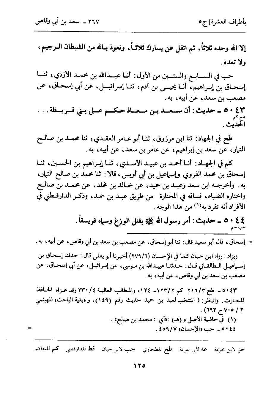 5043 - حَدِيثٌ (طح كم) : أَنَّ سَعْدَ بْنَ مُعَاذٍ حَكَمَ عَلَى بَنِي قُرَيْظَةَ ... الْحَدِيثَ.
