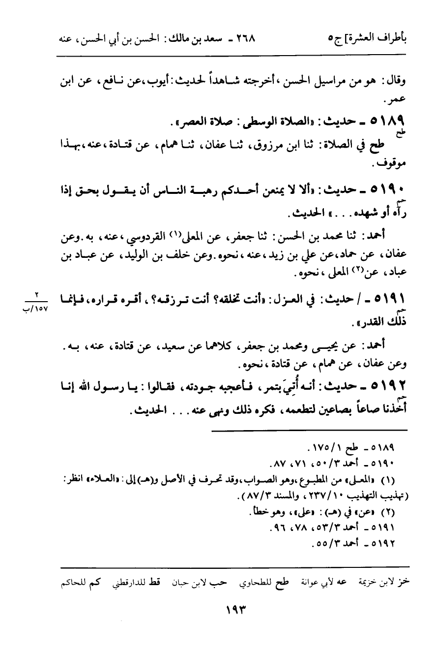5189 - حَدِيثٌ (طح) : " الصَّلاةُ الْوُسْطَى: صَلاةُ الْعَصْرِ ".