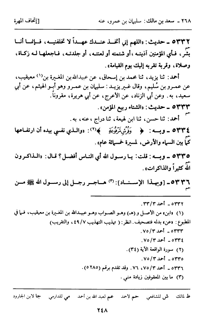 5333 - حَدِيثٌ (حم) : " الشِّتَاءُ رَبِيعُ الْمُؤْمِنِ ".