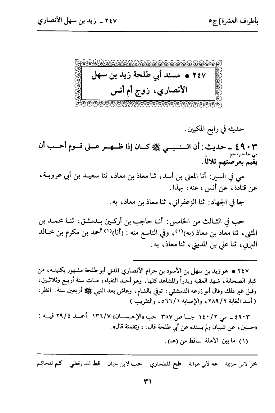 247 ـ مُسْنَدُ أَبِي طَلْحَةَ زيد بْنِ سَهْلٍ الأَنْصَارِيِّ , زَوْجِ أُمِّ أَنَسٍ