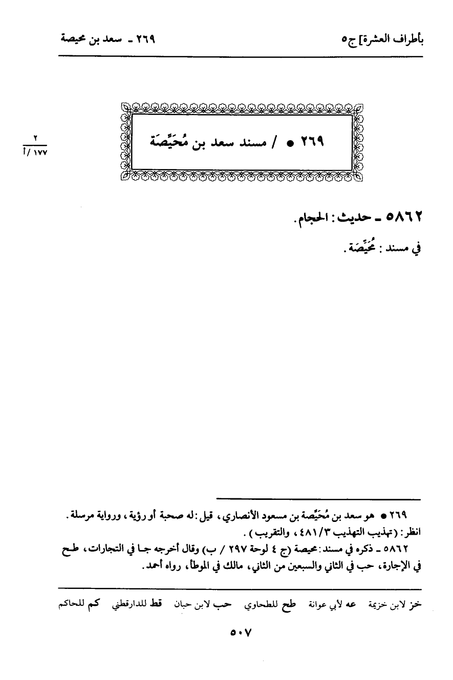 269 ـ مُسْنَدُ سَعْدِ بْنِ مُحَيِّصَةَ.