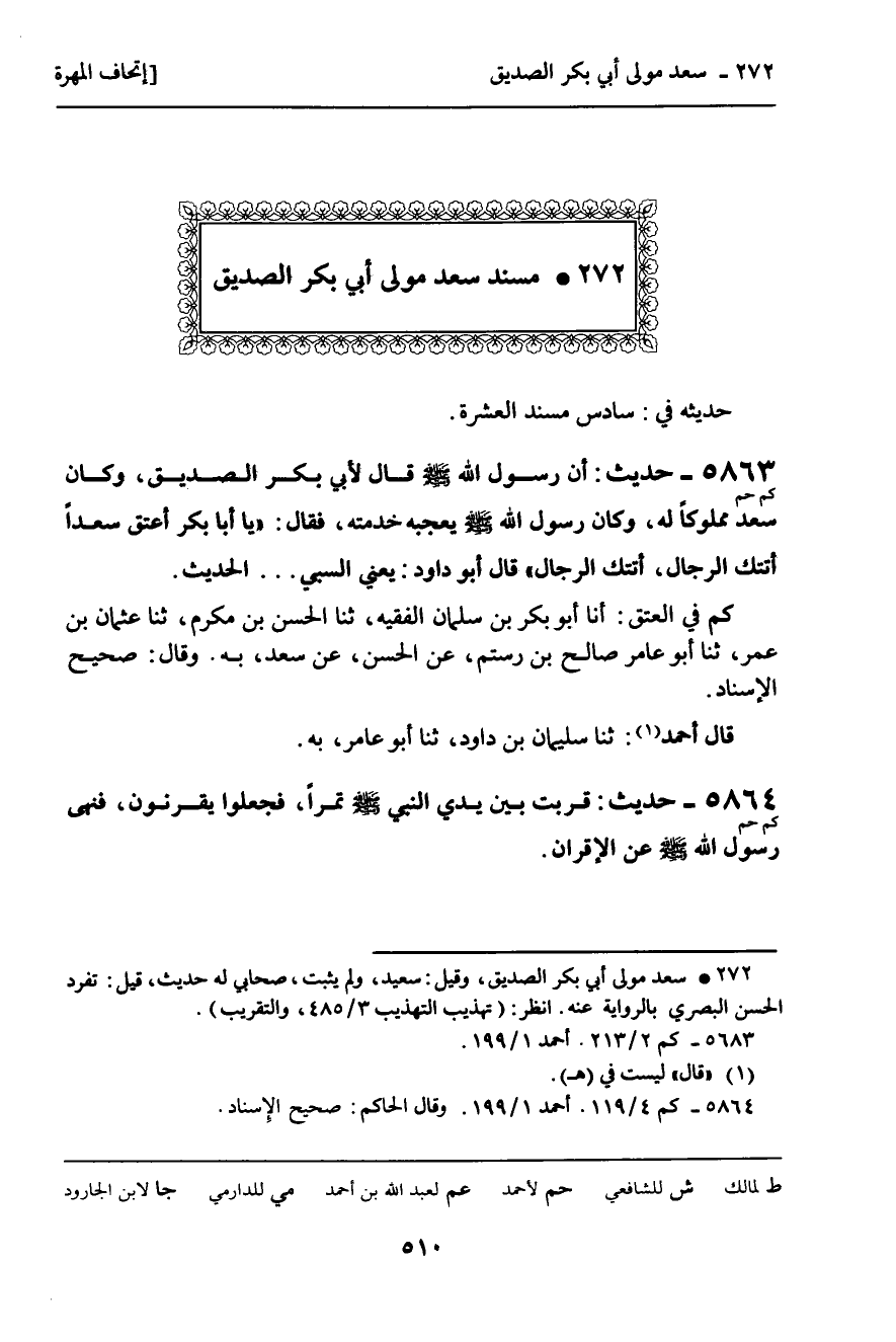 272 ـ مُسْنَدُ سَعْدِ مَوْلَى أَبِي بَكْرٍ الصِّدِّيقِ.