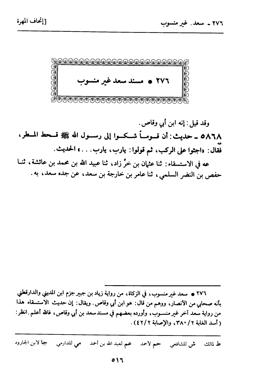 276 ـ مُسْنَدُ سَعْدٍ غَيْرِ مَنْسُوبٍ