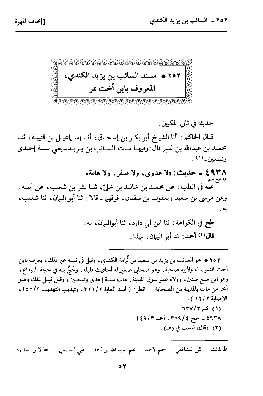 252 ـ مُسْنَدُ السَّائِبِ بْنِ يَزِيدَ الْكِنْدِيِّ , الْمَعْرُوفِ بِابْنِ أُخْتِ نَمِرٍ
