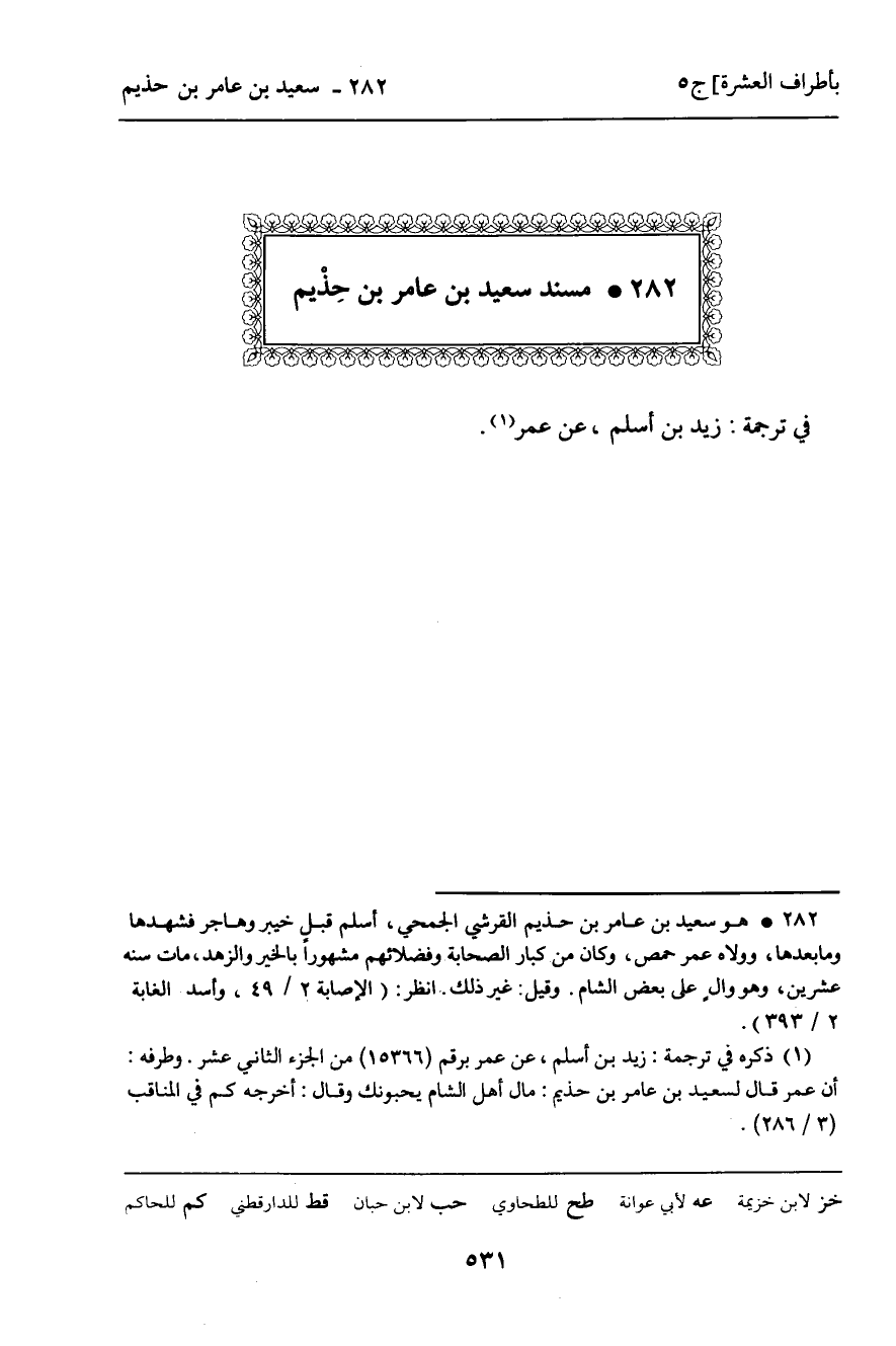282 ـ مُسْنَدُ سَعِيدِ بْنِ عَامِرِ بْنِ حِذْيَمٍ.