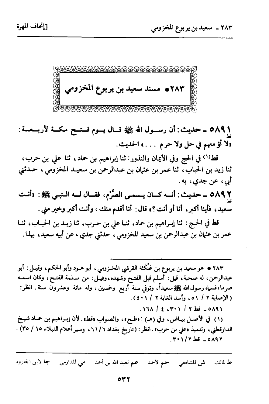 283 ـ مُسْنَدُ سَعِيدِ بْنِ يَرْبُوعٍ الْمَخْزُومِيِّ.