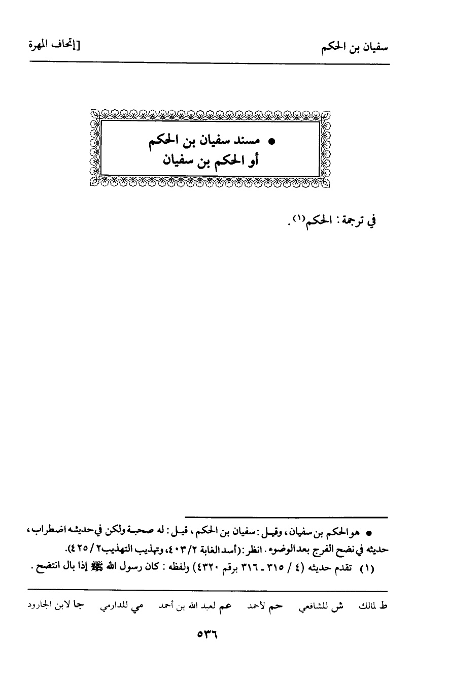 ـ مُسْنَدُ سُفْيَانَ بْنِ الْحَكَمِ أَوِ الْحَكَمِ بْنِ سُفْيَانَ.