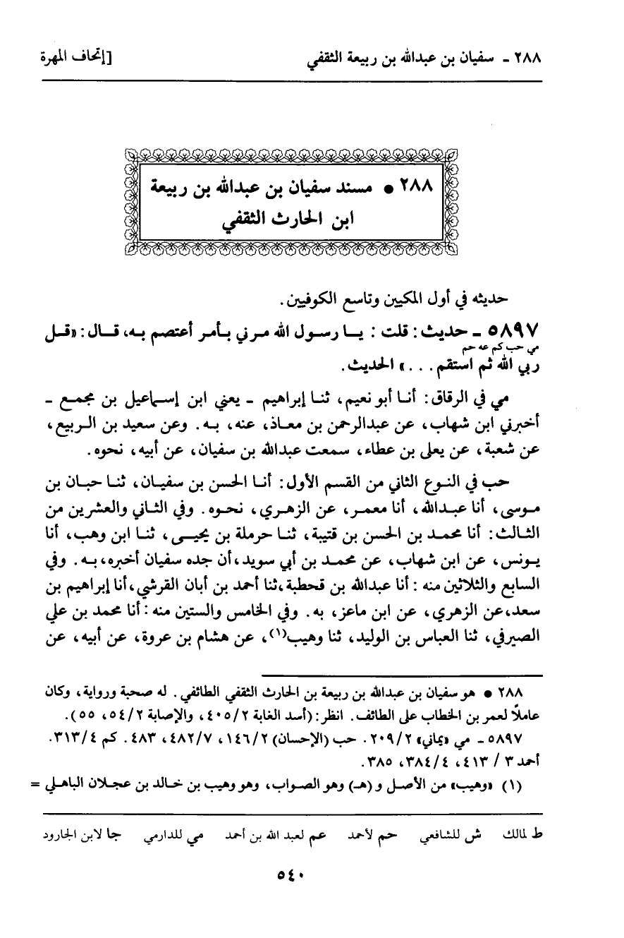 288 ـ مُسْنَدُ سُفْيَانَ بْنِ عَبْدِ اللَّهِ بْنِ رَبِيعَةَ بْنِ الْحَارِثِ الثَّقَفِيِّ.