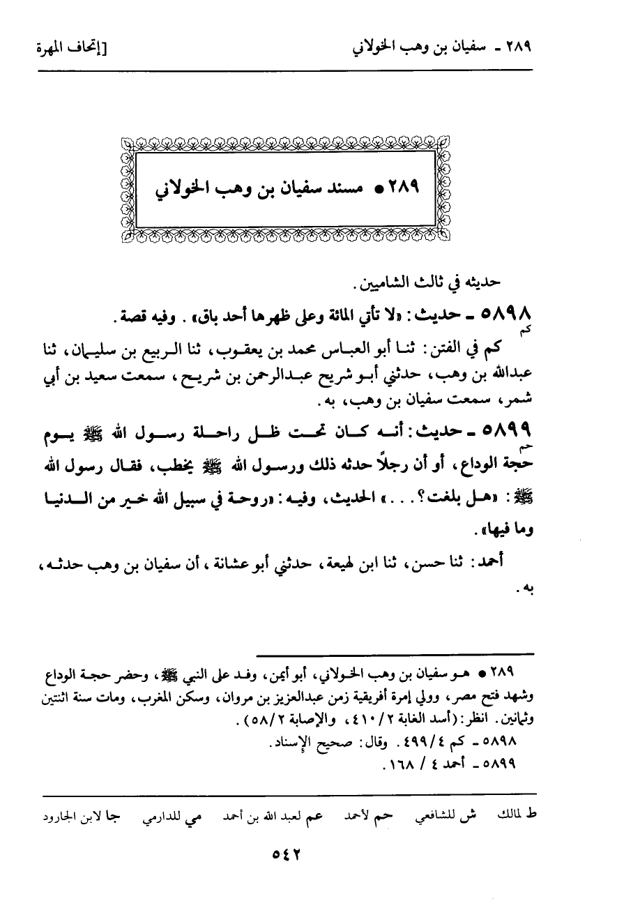 289 ـ مُسْنَدُ سُفْيَانَ بْنِ وَهْبٍ الْخَوْلانِيِّ.