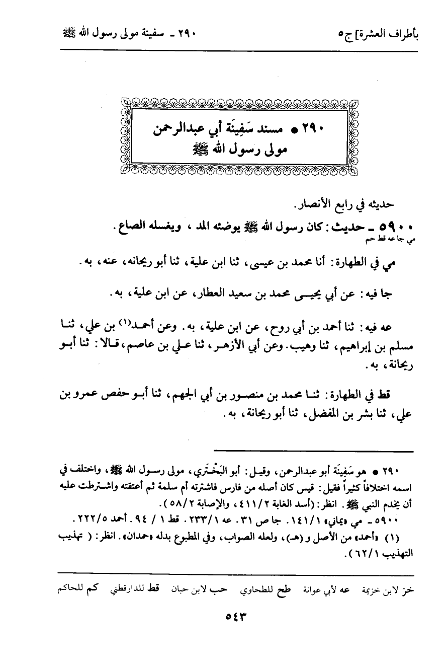 290 ـ مُسْنَدُ سَفِينَةَ أَبِي عَبْدِ الرَّحْمَنِ مَوْلَى رَسُولِ اللَّهِ صَلَّى اللَّهُ عَلَيْهِ وَسَلَّمَ.
