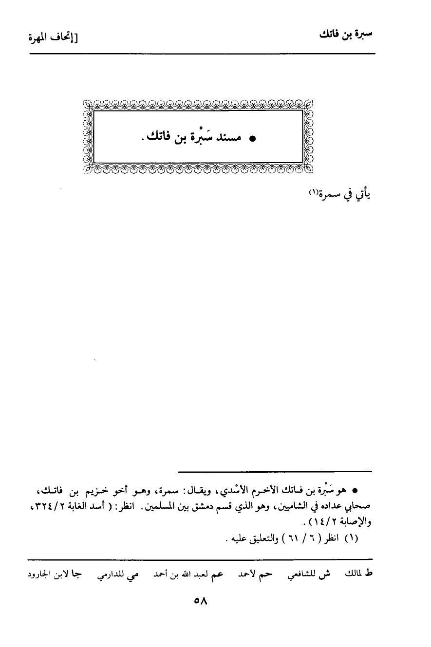 ـ مُسْنَدُ سَبْرَةَ بْنِ فَاتِكٍ.