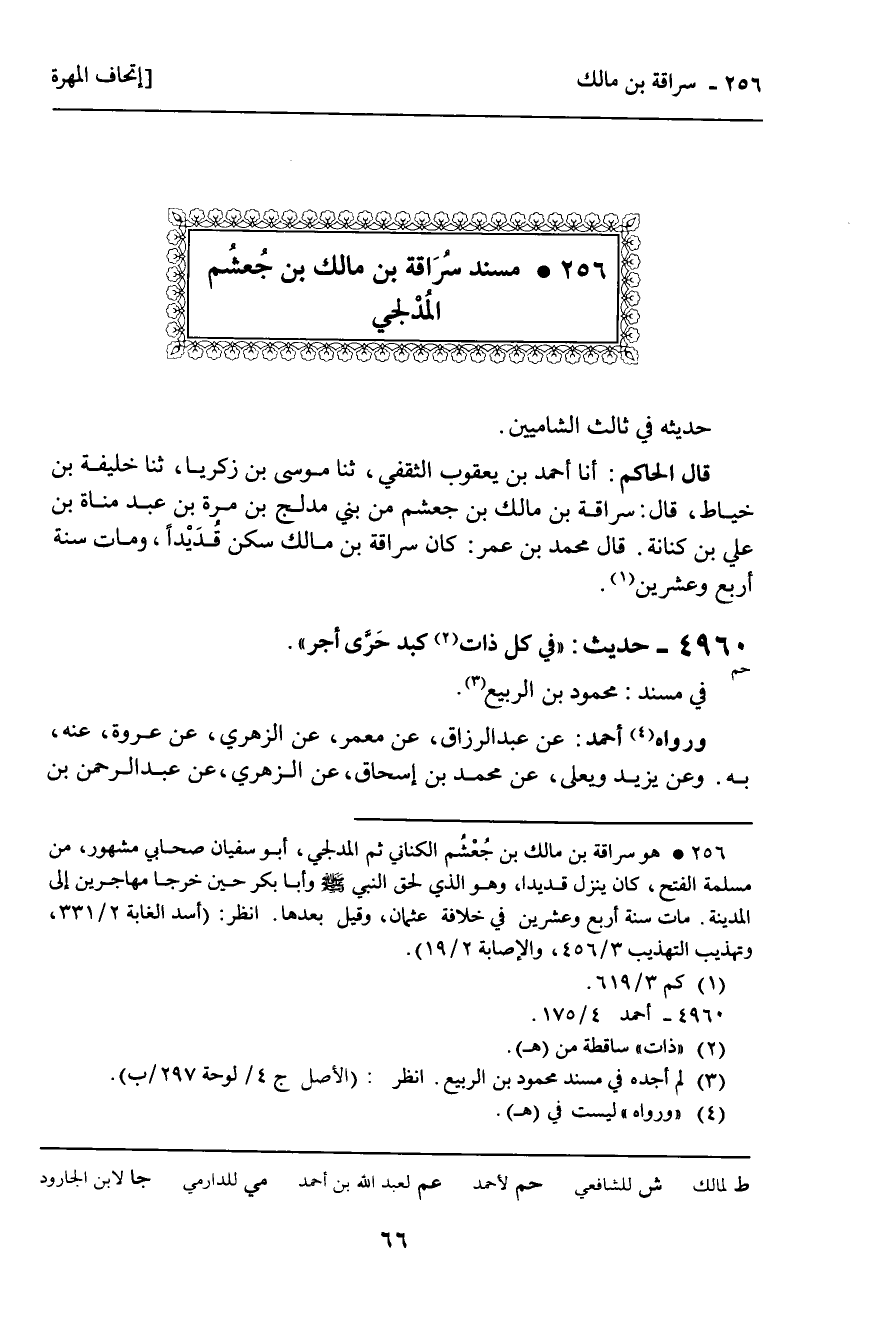 256 ـ مُسْنَدُ سُرَاقَةَ بْنِ مَالِكِ بْنِ جُعْشُمٍ الْمُدْلِجِيِّ
