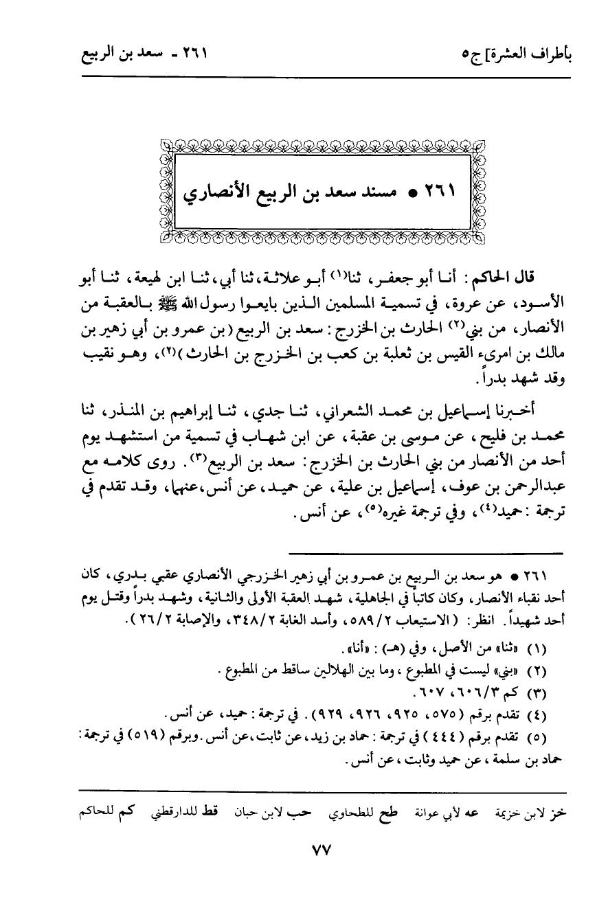 261 ـ مُسْنَدُ سَعْدِ بْنِ الرَّبِيعِ الأَنْصَارِيِّ