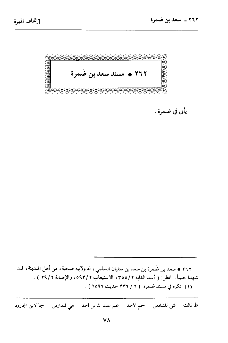 262 ـ مُسْنَدُ سَعْدِ بْنِ ضَمْرَةَ