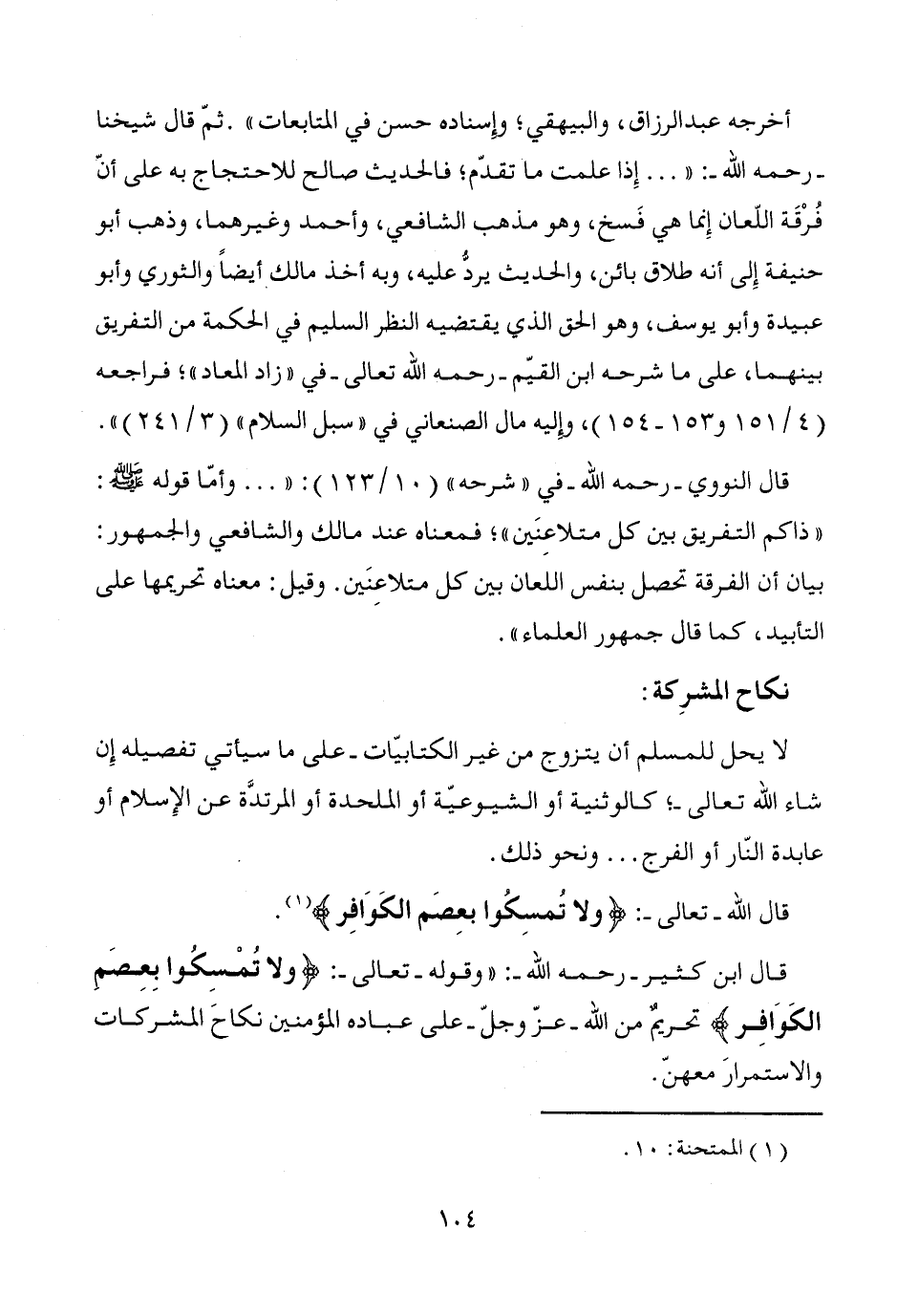 قال ابن كثير -رحمه الله-: "وقوله -تعالى-: {ولا تُمْسِكُوا بِعِصَمِ الكَوَافِر} تحريمٌ من الله -عزّ وجلّ- على عباده المؤمنين نكاحَ المشركات والاستمرارَ معهنّ.