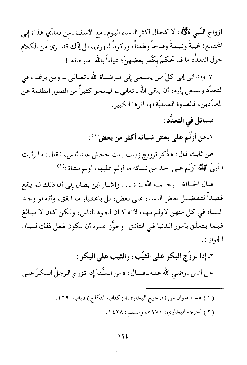 1 - مَن أَوْلَمَ على بعض نسائه أكثر من بعض (¬1):
