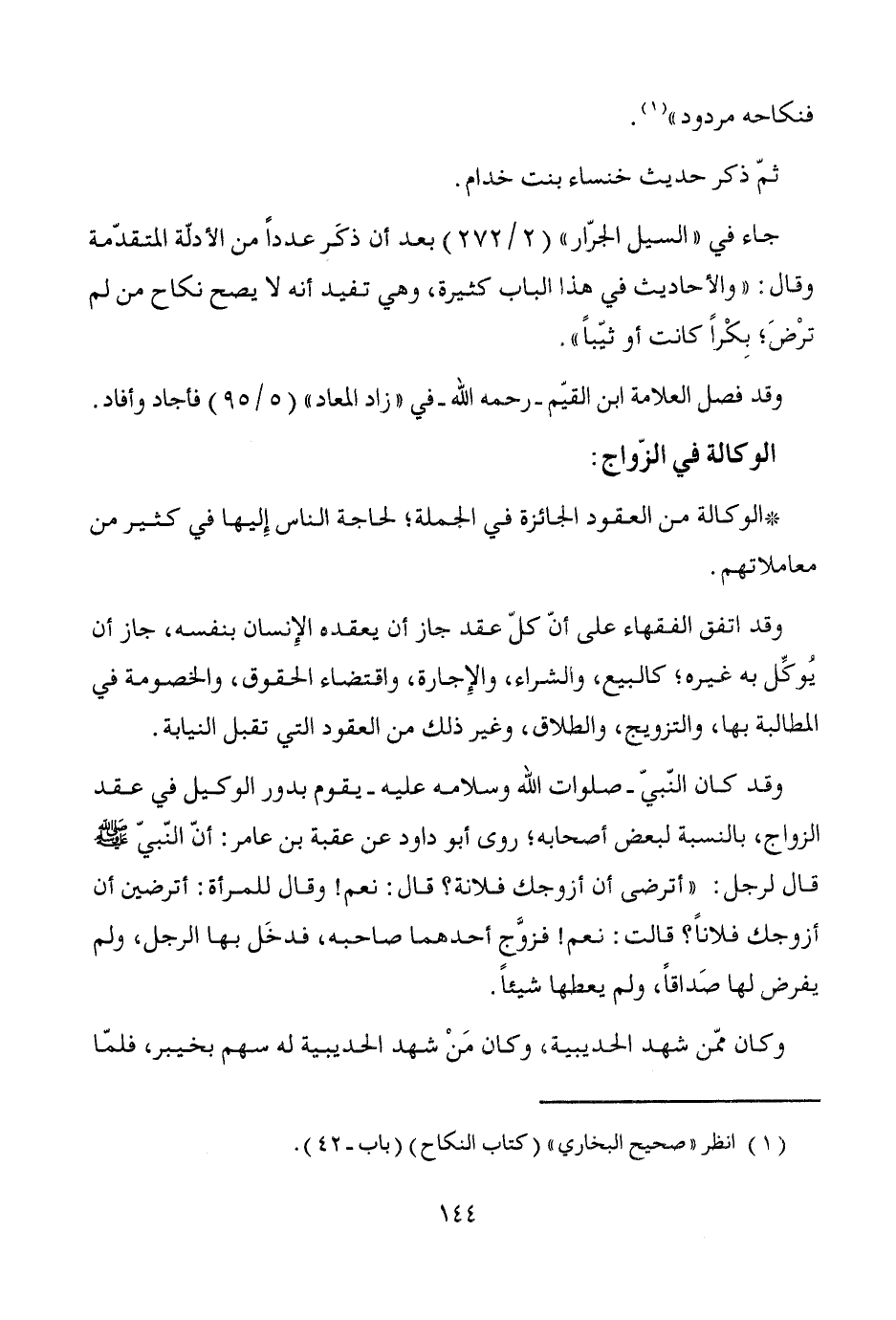 (¬1) انظر "صحيح البخاري" (كتاب النكاح) (باب - 42).