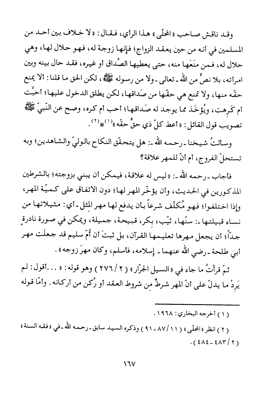 وسألتُ شيخنا -رحمه الله-: هل يتحقّق النكاح بالوليّ والشاهدين؛ وبه تستحلّ الفروج، أم أنّ للمهر علاقة؟