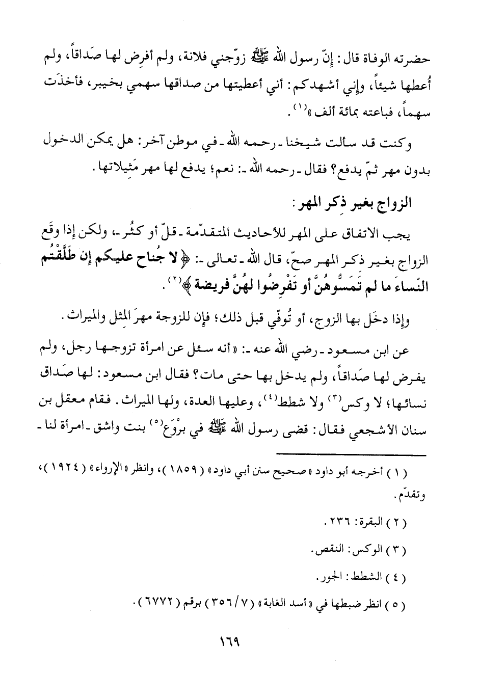 عن ابن مسعود -رضي الله عنه-: "أنه سئل عن امرأة تزوجها رجل، ولم يفرض لها صَداقاً، ولم يدخل بها حتى مات؟ فقال ابن مسعود: لها صَداق نسائها؛ لا وكس (¬3) ولا شطط (¬4)، وعليها العدة، ولها الميراث. فقام معقل بن سنان الأشجعي فقال: قضى رسول الله - صَلَّى اللَّهُ عَلَيْهِ وَسَلَّمَ - في بروَع (¬5) بنت واشق -أمرأة لنا-