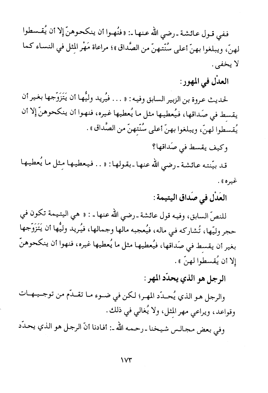 ففي قول عائشة -رضي الله عنها-: "فنُهوا أن ينكحوهنّ إِلا أن يُقسطوا لهنّ، ويبلغوا بهنّ أعلى سُنّتهنّ من الصَّداق"؛ مراعاة مَهْر المِثل في النساء كما لا يخفى.