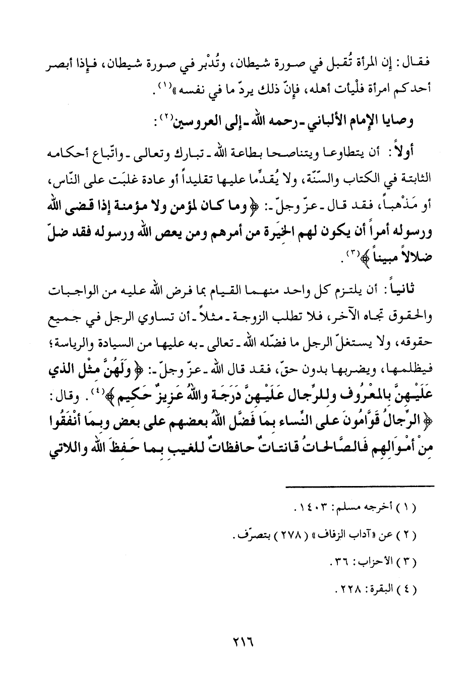 (¬2) عن "آداب الزفاف" (278) بتصرّف.